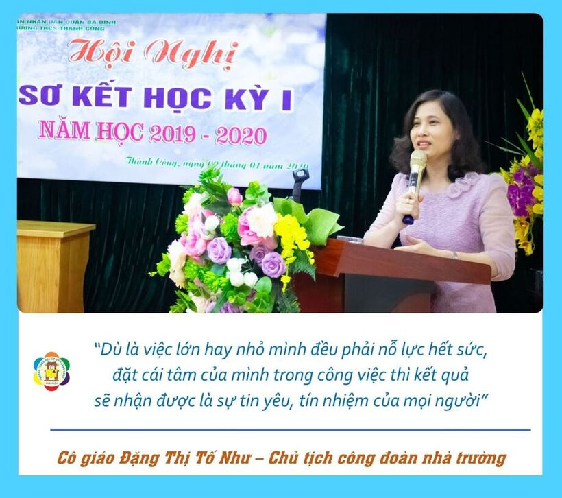 Nhờ sự quan tâm, chỉ đạo sát sao của Ban giám hiệu nhà trường, trong những năm qua, trường THCS Thành Công đã có rất nhiều thầy cô giáo được UBND Thành phố Hà Nội trao tặng danh hiệu “Người tốt, việc tốt”. Cô giáo Đặng Thị Tố Như chính là một bông hoa đẹp trong vườn hoa nghìn việc tốt của ngôi trường THCS Thành Công.