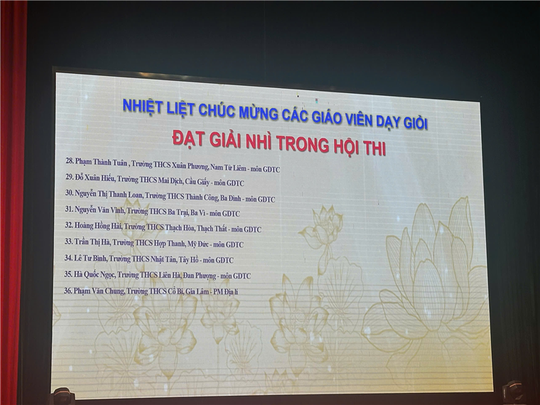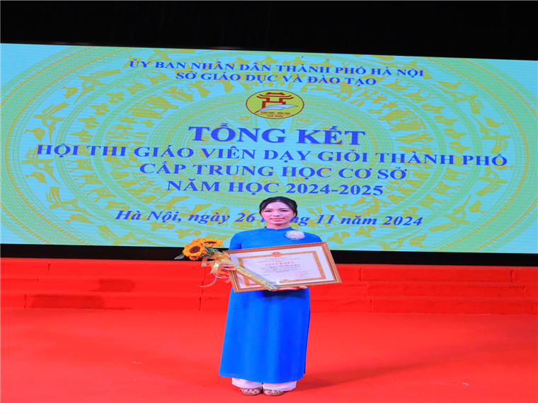 Nhằm mục đích phát hiện, công nhận, tôn vinh giáo viên và nhân rộng những điển hình tiên tiến giúp cho giáo viên phấn đấu, đáp ứng yêu cầu đổi mới, nâng cao chất lượng giáo dục, phát triển nghề nghiệp, Hội thi Giáo viên dạy giỏi Thành phố Hà Nội cấp THCS năm học 2024 - 2025 đã có 180 giáo viên đạt giải gồm 38 giải Nhất, 53 giải Nhì, 68 giải Ba và 21 giải Khuyến khích. Cô giáo Thanh Loan là một trong những giáo viên dạy giỏi được vinh danh trong Hội thi năm nay.