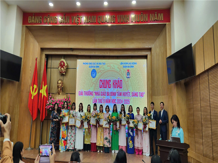 Cô giáo Nguyễn Thị Lan (thứ hai từ trái sang) vinh dự nhận giải thưởng “Nhà giáo Ba Đình tâm huyết, sáng tạo” lần thứ 9 năm học 2024 - 2025