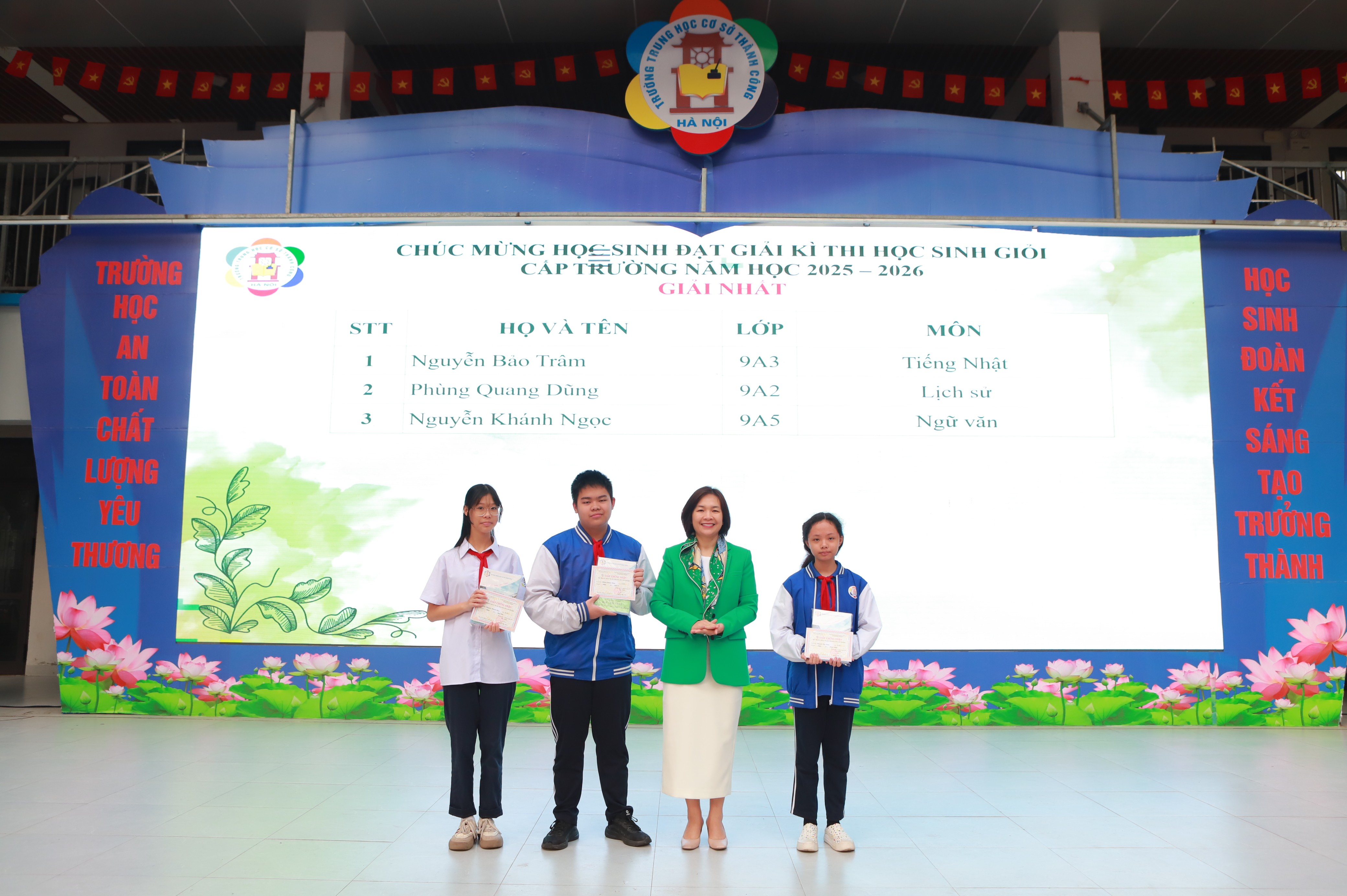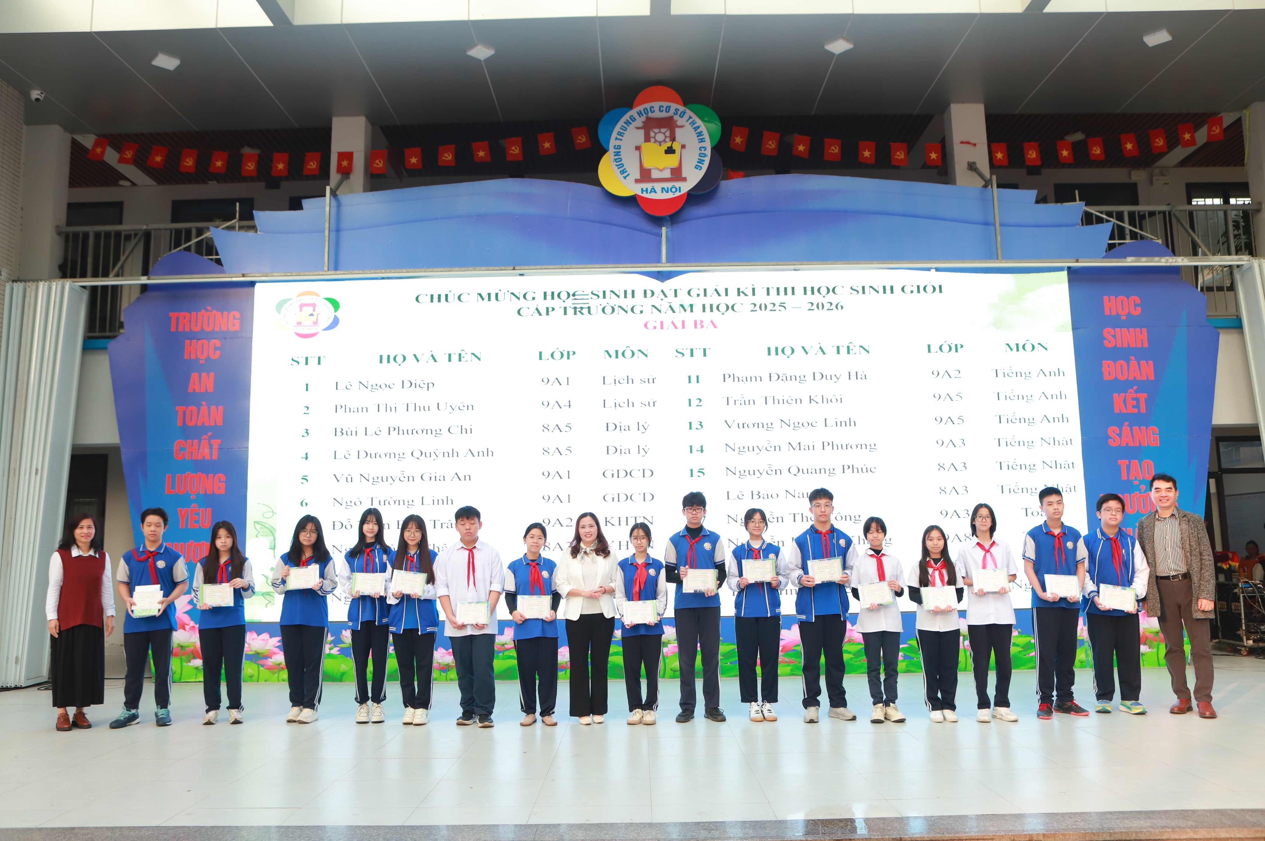 Buổi trao giấy khen diễn ra trong không khí trang trọng và ấm áp. Những gương mặt rạng rỡ trên sân khấu hôm nay là minh chứng cho tinh thần học tập không ngừng, là niềm tự hào và động lực để toàn thể học sinh nhà trường tiếp tục cố gắng.