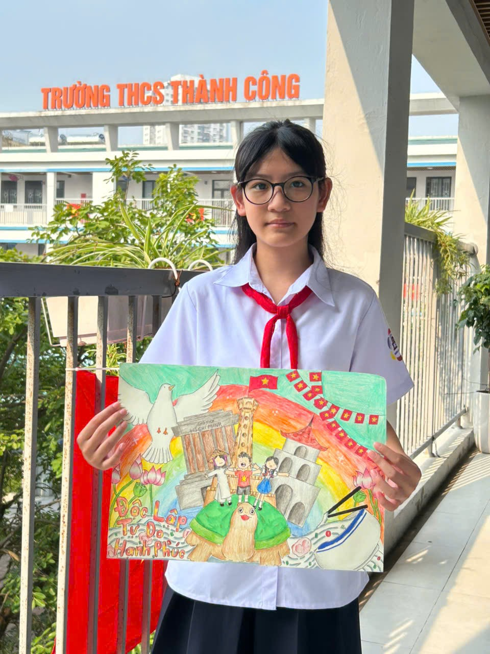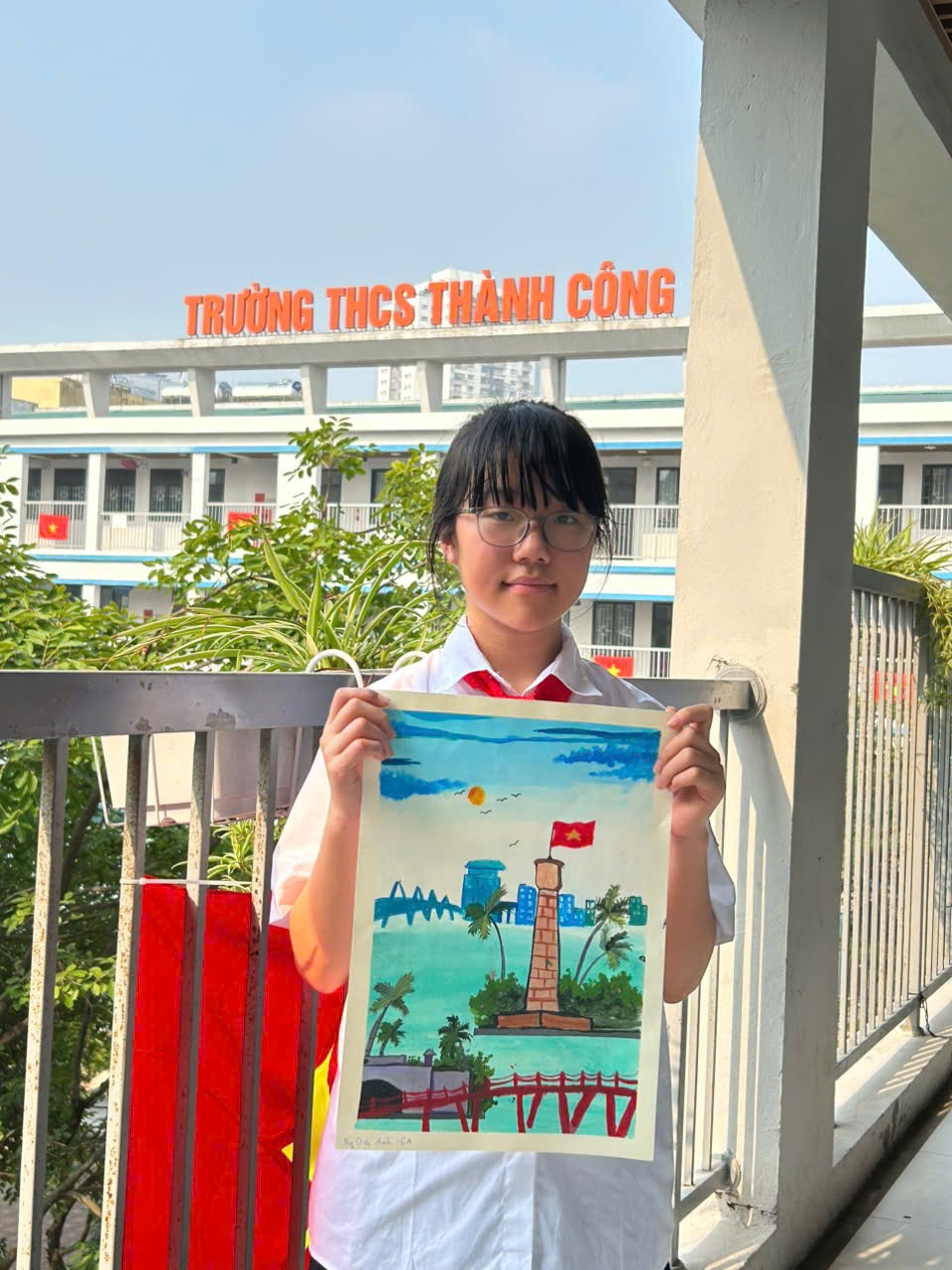 Khi ngồi bên nhau, bàn tay còn dính màu, mắt sáng long lanh, chúng em kể cho nhau nghe về ý tưởng của mình. Có lúc cười vang vì vẽ “lệch” một chi tiết, có khi lại im lặng thật lâu chỉ để tô cho đúng màu của bầu trời Hà Nội. Những khoảnh khắc ấy làm chúng em thấy mình gắn bó hơn, hiểu nhau hơn và thêm yêu thành phố này hơn. Cuộc thi không chỉ mang lại bức tranh đẹp, mà còn để lại những ký ức thật trong trẻo, đáng nhớ của tuổi học trò.