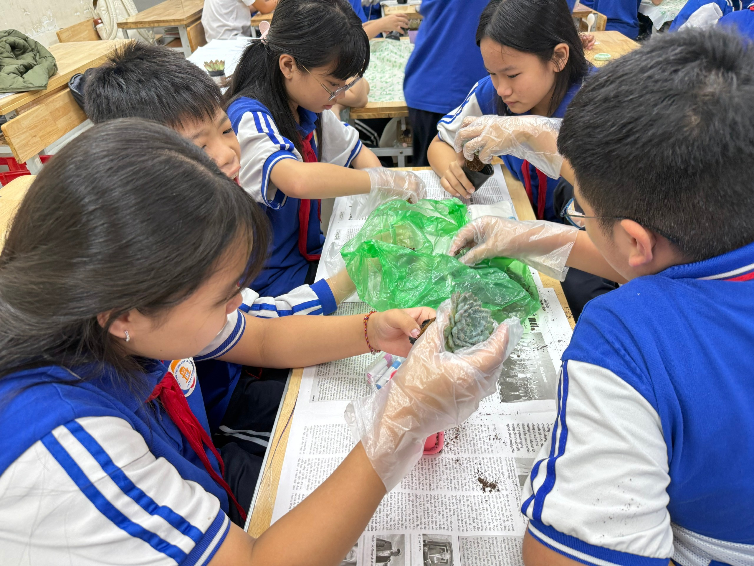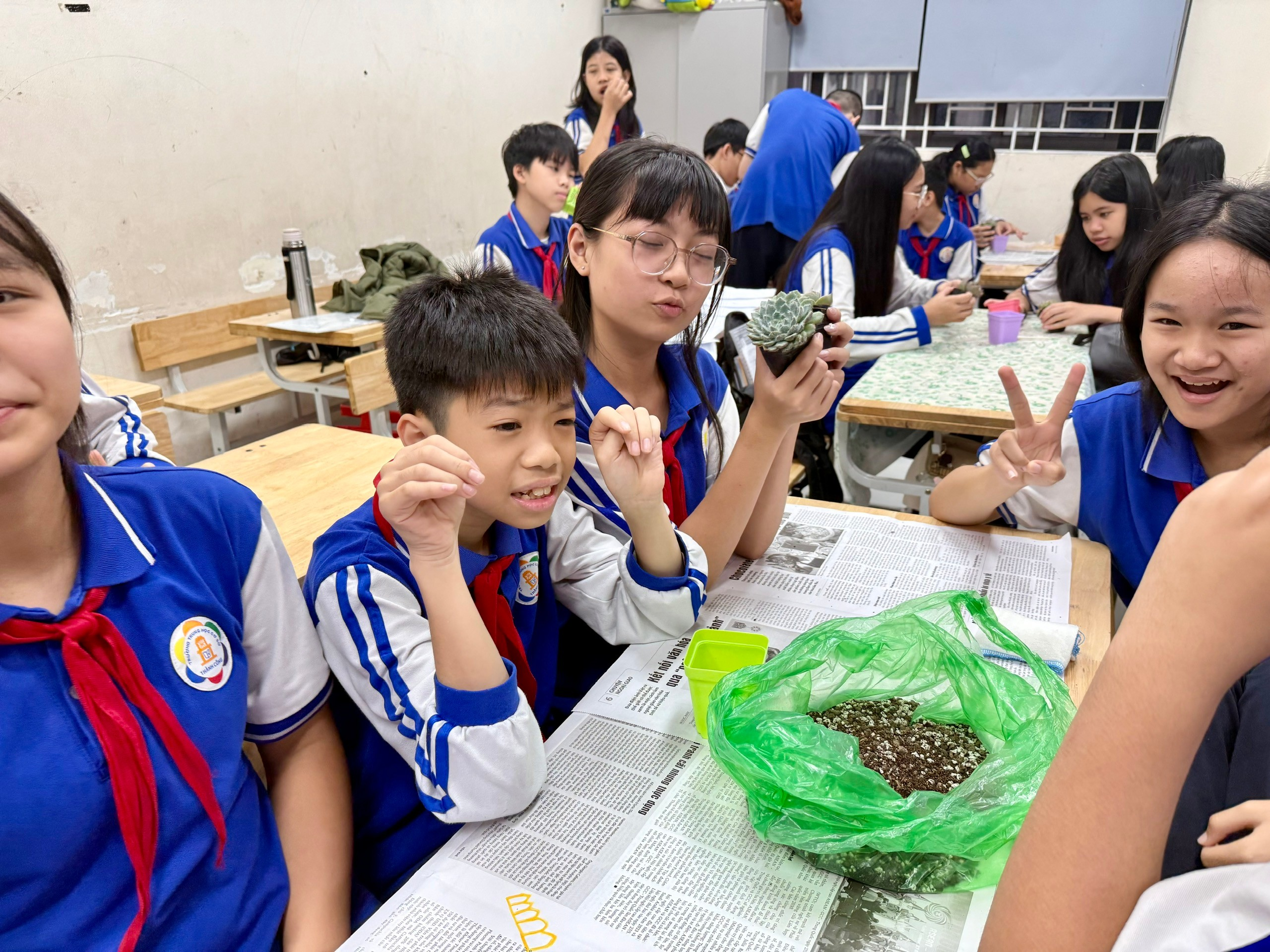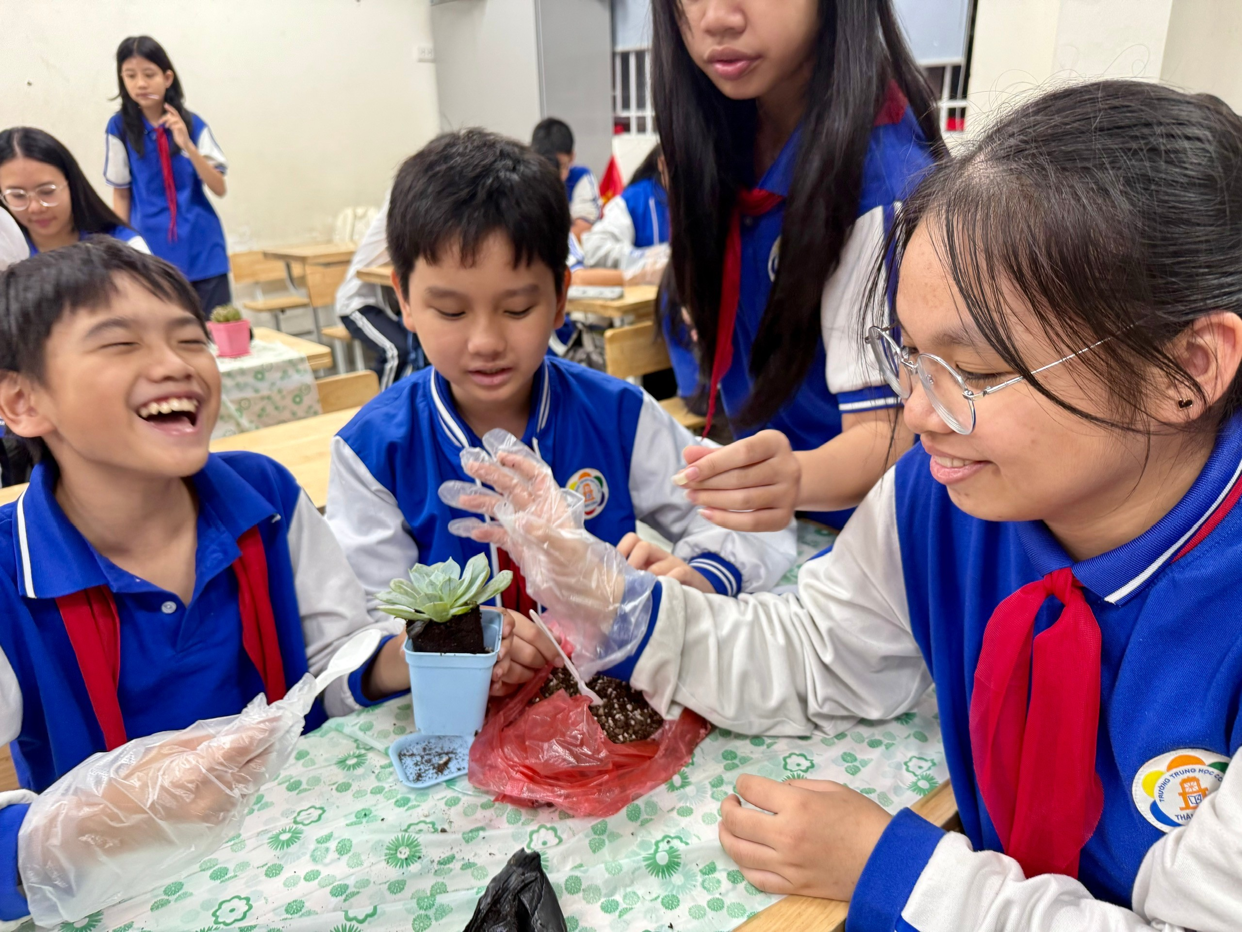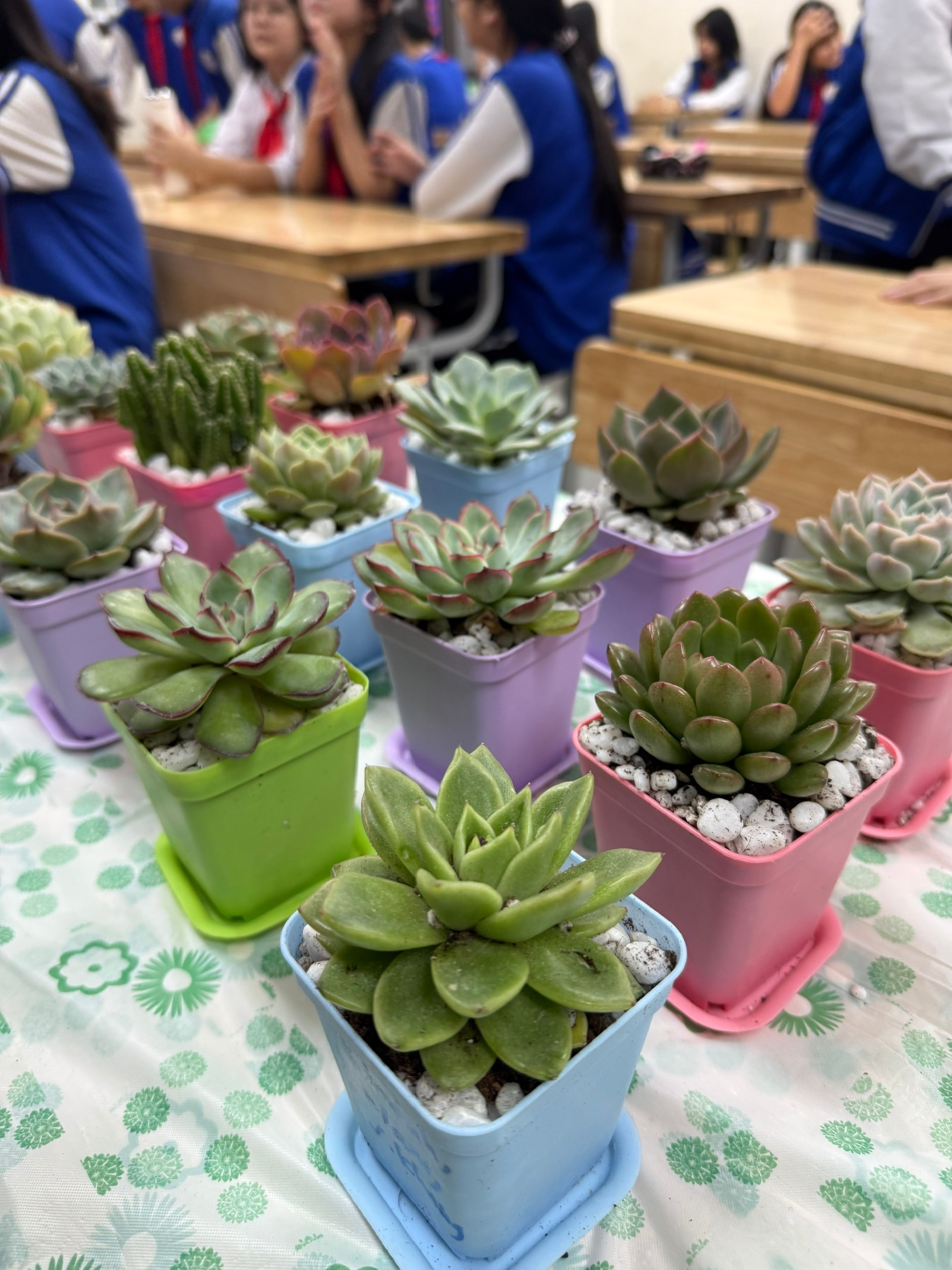 Lớp 7A6 đã chọn sen đá – một loài cây biểu tượng cho sự kiên cường, bền bỉ và sống mãnh liệt – làm quà tặng chính thức cho thầy cô. Mỗi chậu sen đá là thành quả của quá trình chuẩn bị kỹ lưỡng và tâm huyết của các thành viên 7A6. Từ việc chọn chậu, trộn đất dinh dưỡng, đến tỉ mỉ đặt cây và trang trí, tất cả đều được chúng em tự tay thực hiện. Đây không chỉ là một món quà, mà là sự nhẫn nại và yêu thương được vun đắp.