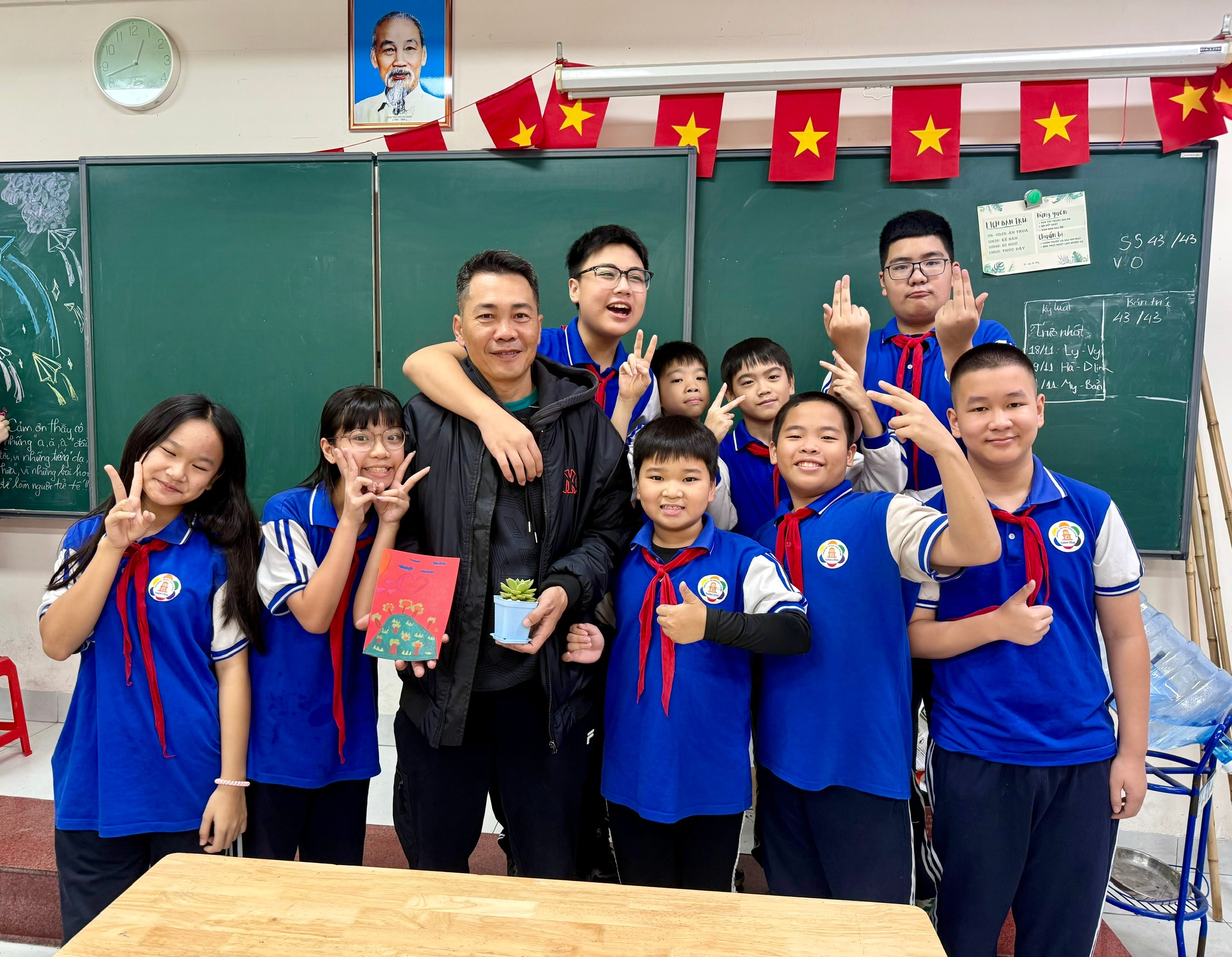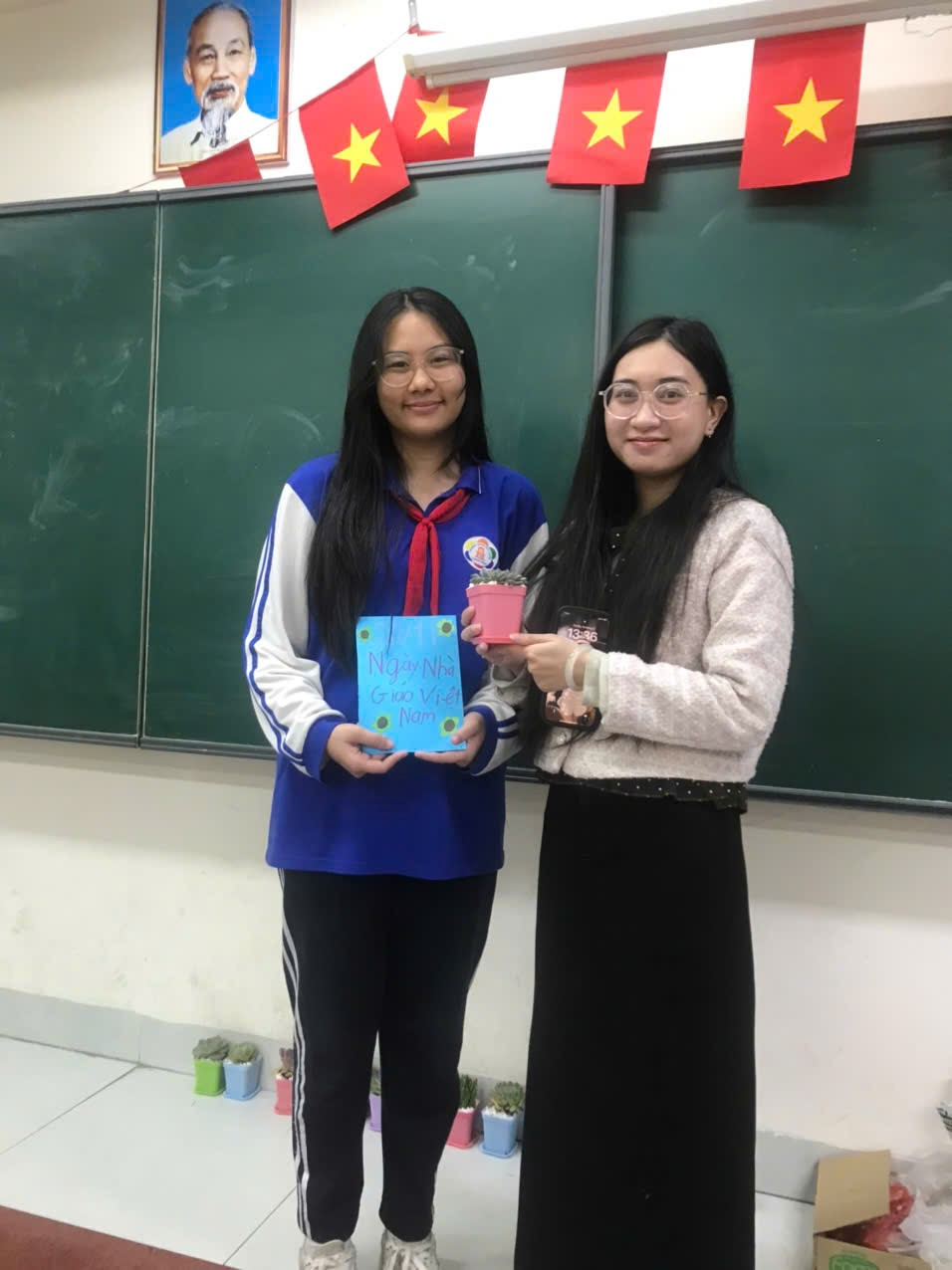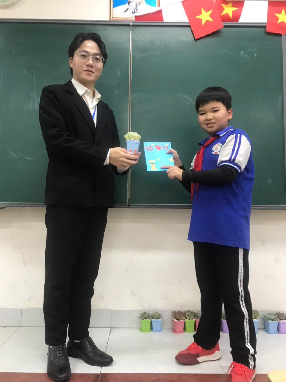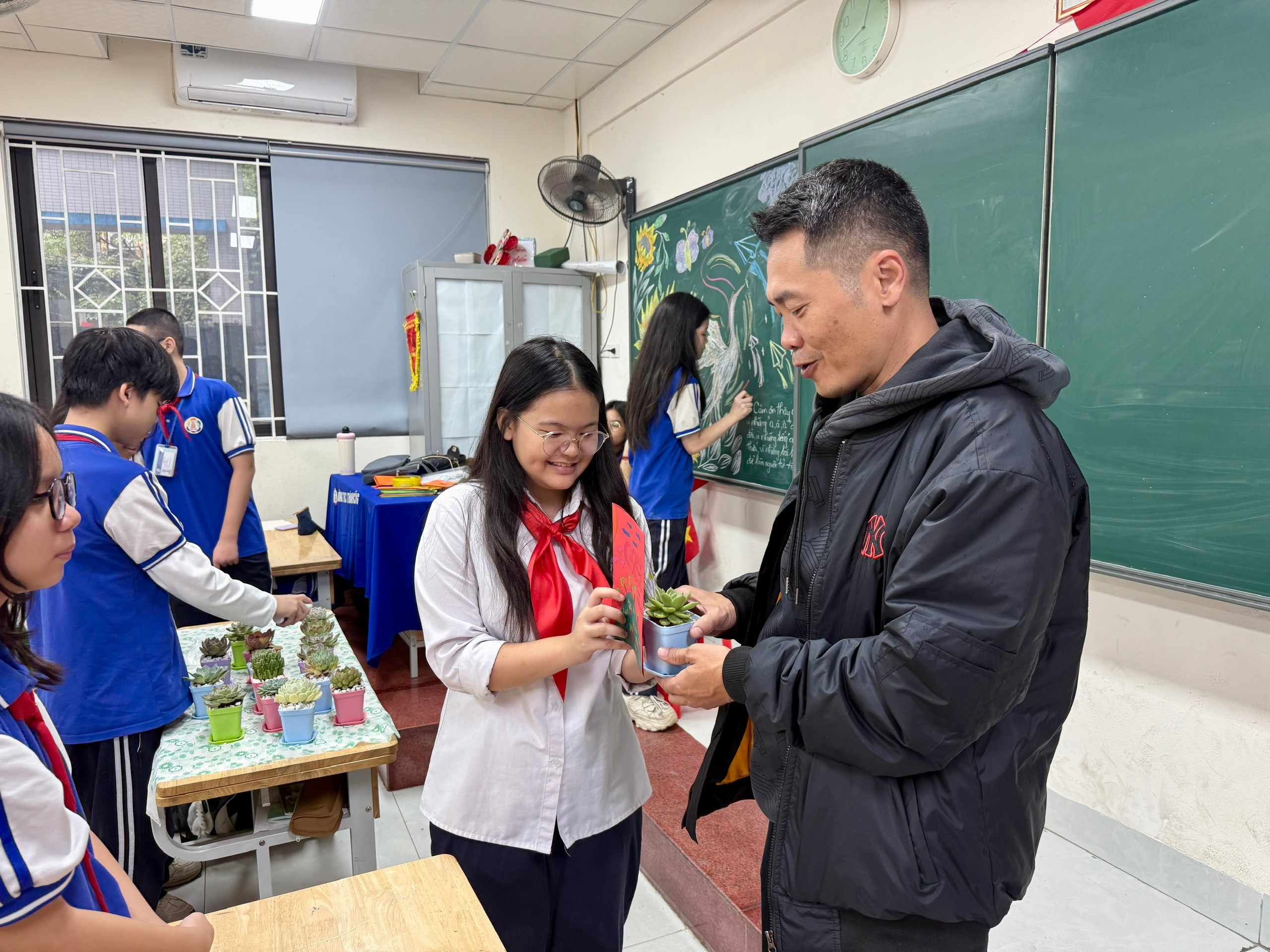 Đi kèm với mỗi chậu sen đá, các bạn học sinh 7A6 cũng đã tự tay làm những tấm thiệp xinh xắn. Trong đó là những dòng chữ nắn nót, những lời chúc chân thành, những kỷ niệm khó quên được viết tay, khiến món quà trở nên ý nghĩa hơn bao giờ hết. Lớp 7A6 xin kính chúc quý thầy, cô giáo luôn dồi dào sức khỏe, tràn đầy niềm vui và giữ mãi ngọn lửa nhiệt huyết trong sự nghiệp cao quý của mình! Chúng em xin hứa sẽ cố gắng học tập và rèn luyện thật tốt, để mỗi chậu sen đá tri ân này sẽ là nguồn động viên, là minh chứng cho sự trưởng thành của tập thể 7A6. 💐 Happy Vietnam Teacher's Day! 💐