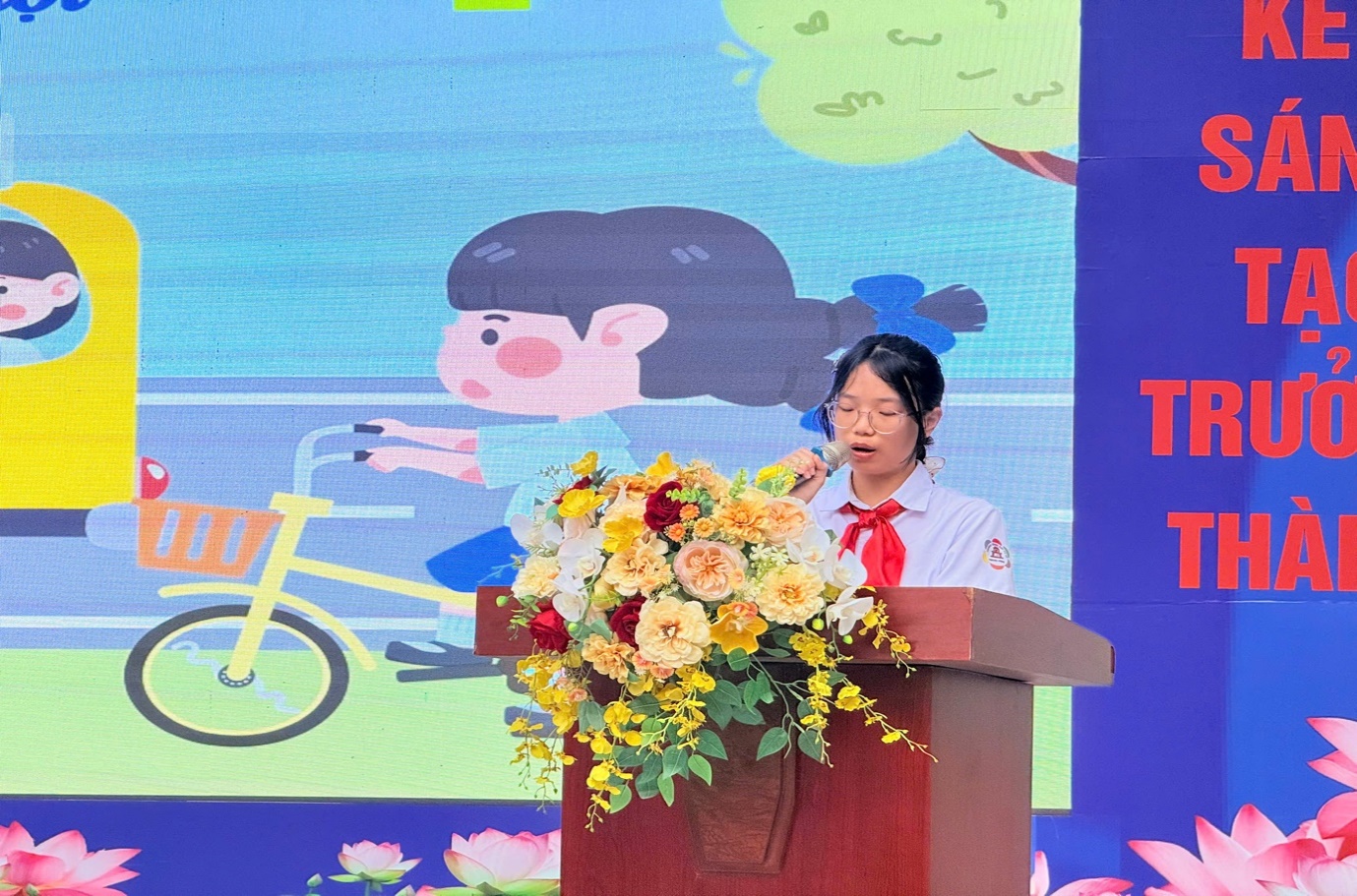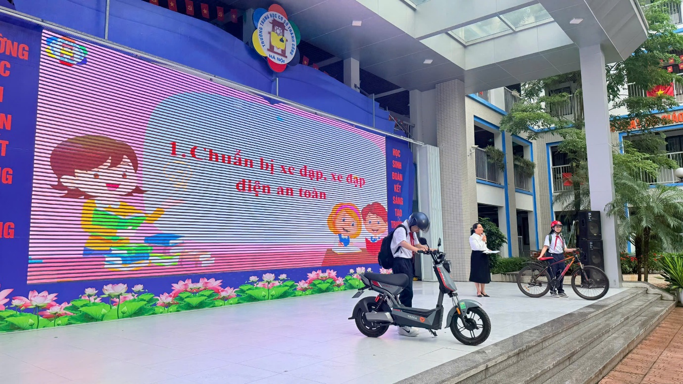 Bên cạnh đó, để giúp các em học sinh có thêm kiến thức và kỹ năng cần thiết trong việc tham gia giao thông an toàn, nhà trường còn xây dựng một chuyên đề tuyên truyền về an toàn giao thông. Qua hoạt động tuyên truyền, các em đã hiểu rõ hơn trách nhiệm của mình khi tham gia giao thông, đặc biệt là khi sử dụng xe đạp và xe đạp điện – phương tiện quen thuộc của lứa tuổi THCS hiện nay.