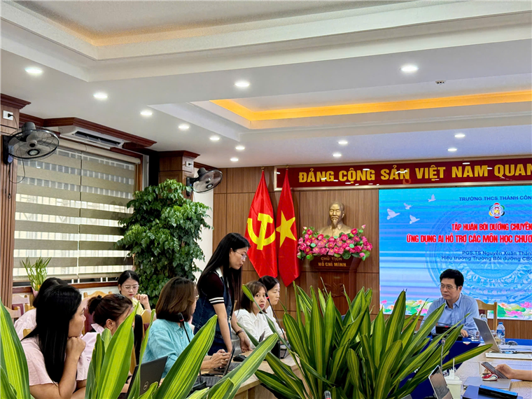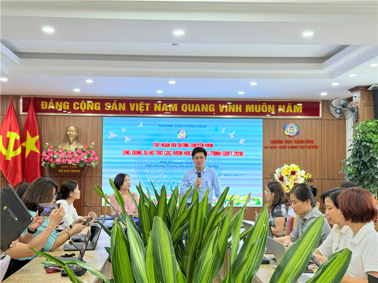 Chiều ngày 15/8/2025, Trường THCS Thành Công đã tổ chức buổi tập huấn “Ứng dụng AI hỗ trợ dạy học các môn học theo chương trình GDPT 2018 cấp THCS” cho toàn thể cán bộ, giáo viên và nhân viên. Đây là một trong những hoạt động trọng tâm của nhà trường nhằm nâng cao chất lượng giảng dạy, bắt kịp xu hướng công nghệ trong giáo dục hiện đại.