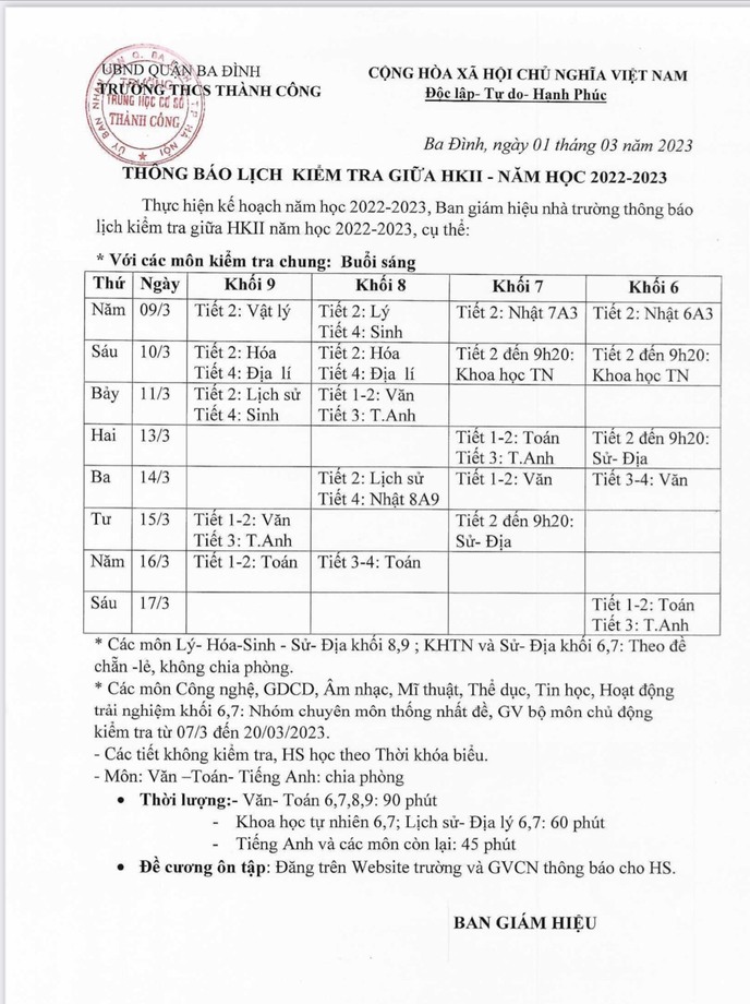 ​Dưới đây là đề cương ôn tập giữa học kì 2 năm học 2022-2023 của trường THCS Thành Công. Chúc các em học sinh ôn tập tốt và đạt kết quả cao trong kì thi!