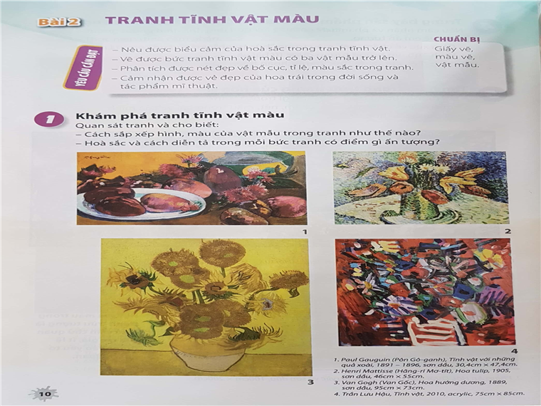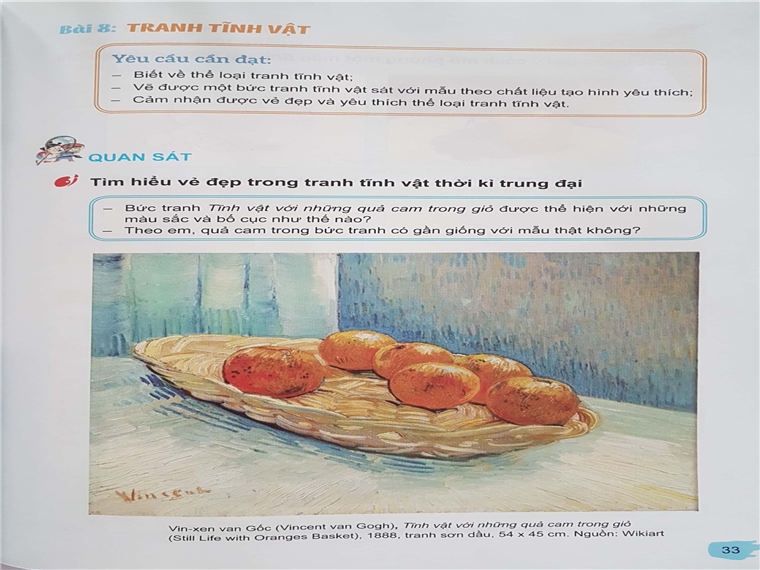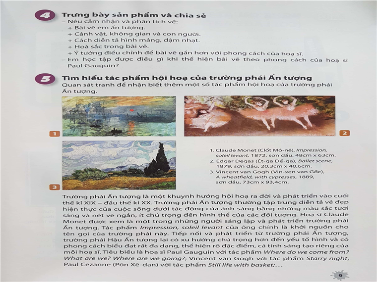 Tranh của Van Gogh và tên ông được giới thiệu như đại diện tiêu biểu của trường phái Ấn tượng trong sách Mĩ thuật lớp 8 (Bộ Chân trời sáng tạo)