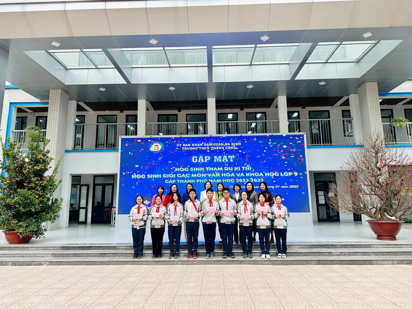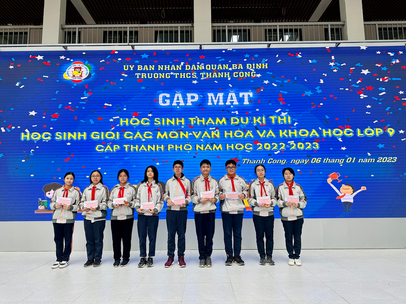 Năm học 2022-2023, trường THCS Thành Công đạt 45 giải trong kì thi Học sinh giỏi các môn Văn hóa và Khoa học lớp 9 cấp quận, có 10 học sinh xuất sắc đã được tuyển chọn vào vòng thi Thành phố. Trong buổi gặp mặt, cô giáo Nguyễn Ngọc Anh – Bí thư Chi bộ, Hiệu trưởng nhà trường đã đánh giá cao những nỗ lực, cố gắng của các em trong suốt quá trình học tập trên lớp và trong thời gian ôn luyện đội tuyển. Cô cũng trao đổi, căn dặn cẩn thận, chu đáo, gửi gắm niềm tin đến tất cả các em học sinh.