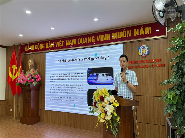 Chiều ngày 14/8/2025, tại trường THCS Thành Công đã diễn ra buổi tập huấn chuyên đề “Ứng dụng Trí tuệ nhân tạo (AI) trong quản lí và giảng dạy” dành cho đội ngũ cán bộ, giáo viên, nhân viên nhà trường. Đây là hoạt động nhằm cập nhật xu thế công nghệ mới, nâng cao năng lực ứng dụng công nghệ thông tin, góp phần đổi mới phương pháp giảng dạy và quản lý giáo dục.