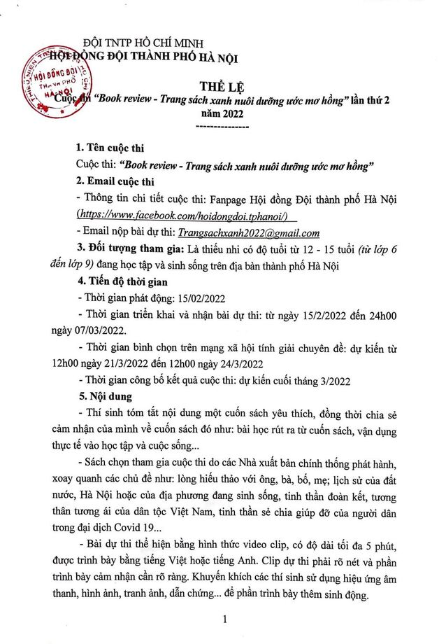 Ban phụ trách đội trường THCS Thành Công phát động cuộc thi "BOOK REVIEW" năm 2022