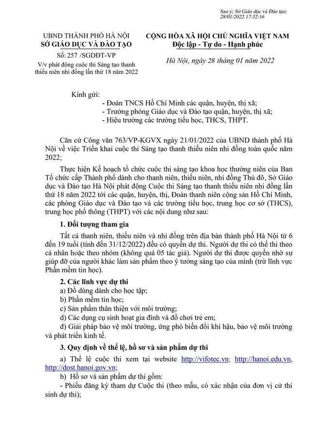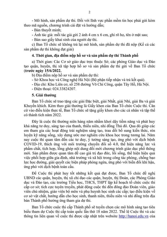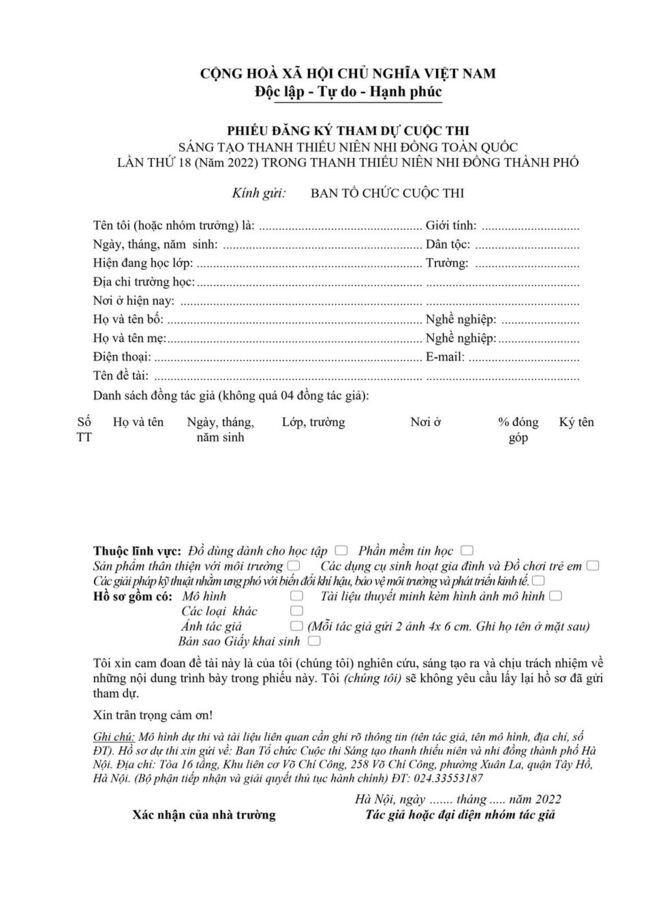 Ban phụ trách đội trường THCS Thành Công phát động cuộc thi "Sáng tạo thanh thiếu niên nhi đồng toàn quốc" năm 2022