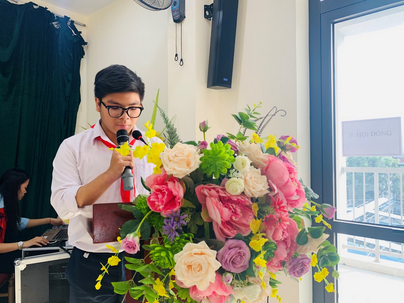 Bạn Nguyễn Tuấn Minh - Chi đội 8A4 trình bày phương hướng công tác Đội 2022-2023.