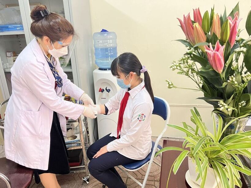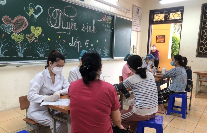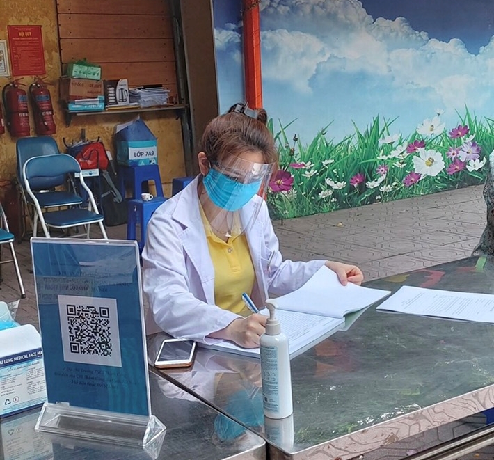 Cô Ngân hỗ trợ Trung tâm y tế phường Thành Công trong công tác tiêm phòng cho học sinh