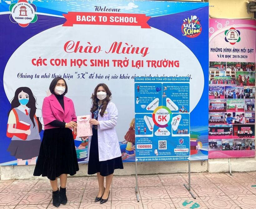 Nhân kỉ niệm ngày 27/2 – Ngày Thầy thuốc Việt Nam, sáng ngày 26/2/2022, Ban giám hiệu và Công đoàn trường THCS Thành Công tặng hoa chúc mừng cô Nguyễn Kim Ngân – cán bộ phụ trách y tế của nhà trường.