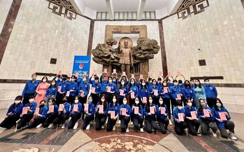Trường THCS thành công tổ chức kết nạp đoàn cho 41 đội viên ưu tú tại bảo tàng Hồ Chí Minh
