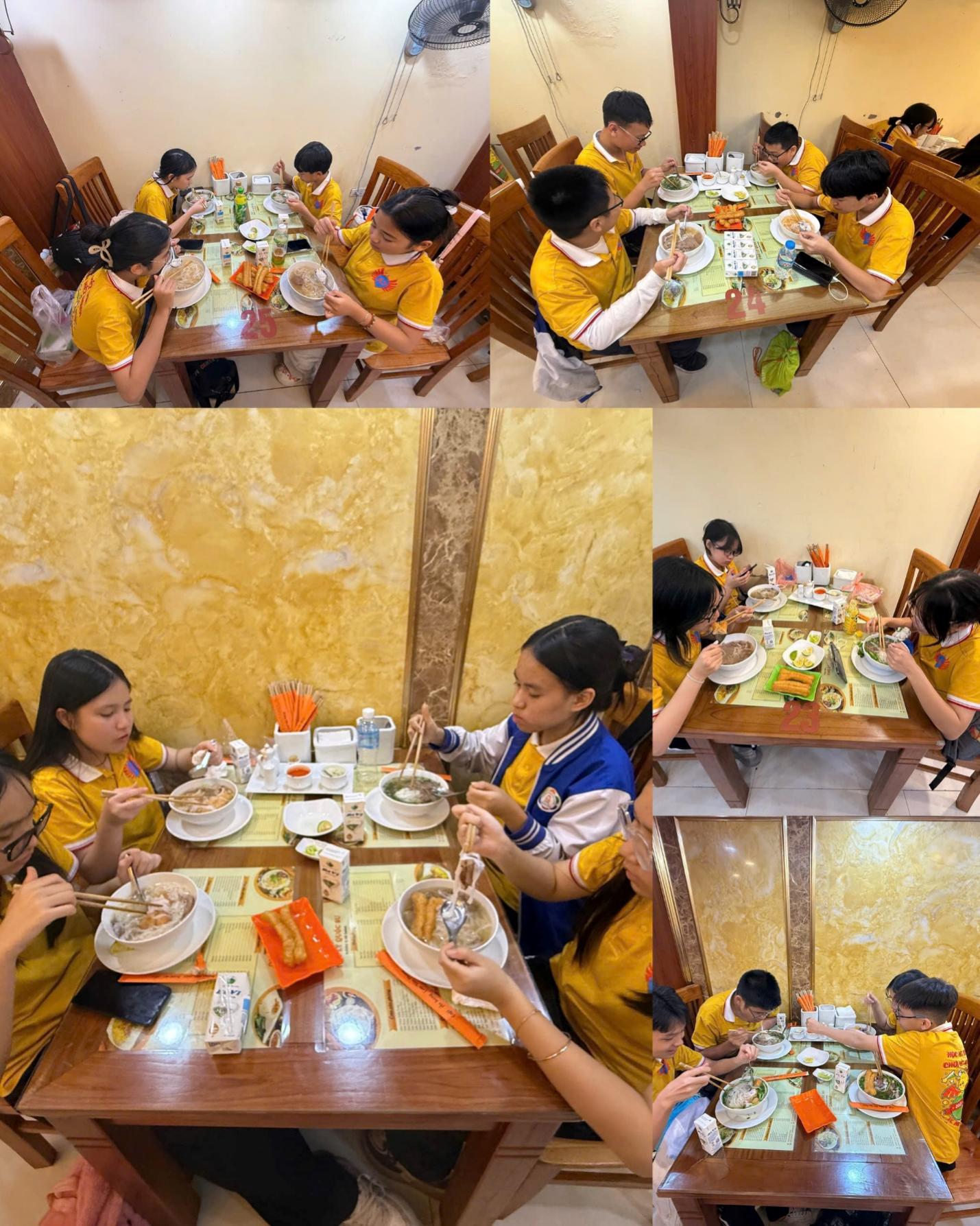 Trên đường trở về, lớp em đã được Ban phụ huynh và giáo viên chủ nhiệm cho ghé vào quán quen để thưởng thức một tô phở Lý Quốc Sư nóng hổi, có bonus thêm hộp sữa tươi, kết thúc một ngày trọn vẹn với niềm vui và sự gắn kết.