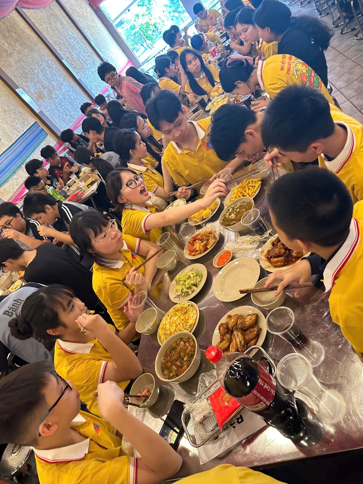 Sau những giờ phút vui chơi hết mình, 8A7 chúng em trở về khu ăn trưa. Bữa ăn dân dã nhưng đậm đà hương vị khiến ai cũng thích thú – cơm, cánh gà chiên , rau xào... tất cả tạo nên một trải nghiệm khó quên.