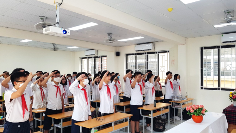 Đúng 7h30’, tiếng hát quốc ca và đội ca vang lên thật trang nghiêm