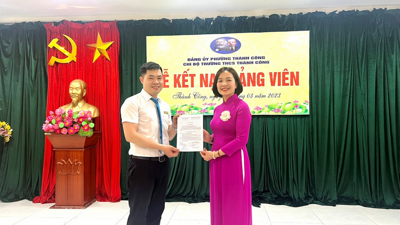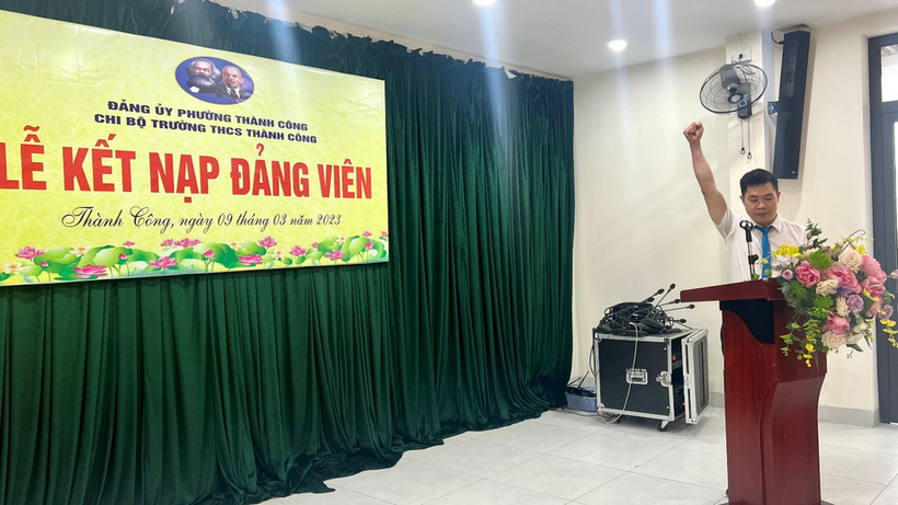Đồng chí Bí thư Chi đoàn trường THCS Thành Công vinh dự được đứng trong hàng ngũ của Đảng Cộng sản Việt Nam.