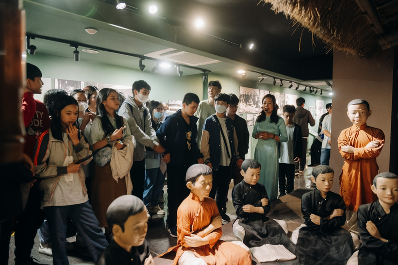 Qua mỗi tầng của bảo tàng, cô trò được tham quan, trải nghiệm một không gian văn học đầy kí ức.Với “Văn học Việt Nam thời kỳ cổ - trung đại” (thế kỷ 10 đến thế kỷ 19), học sinh có dịp ôn lại những tác phẩm được học trong sách vở, những tác giả của giai đoạn văn học Lý- Trần- Lê...Các con hiểu hơn về “Các nhà văn Giải thưởng Hồ Chí Minh” với tổ hợp “Không gian văn hóa Xóm Chòi” (Nơi Hội văn nghệ Việt Nam đóng trụ sở làm việc trong cuộc kháng chiến chống Pháp). Cả lớp xúc động trước hình ảnh tái hiện Bác Hồ nơi chiến khu Việt Bắc hay khi trong ngục vẫn vang lên những vần thơ của một tâm hồn thi sĩ.