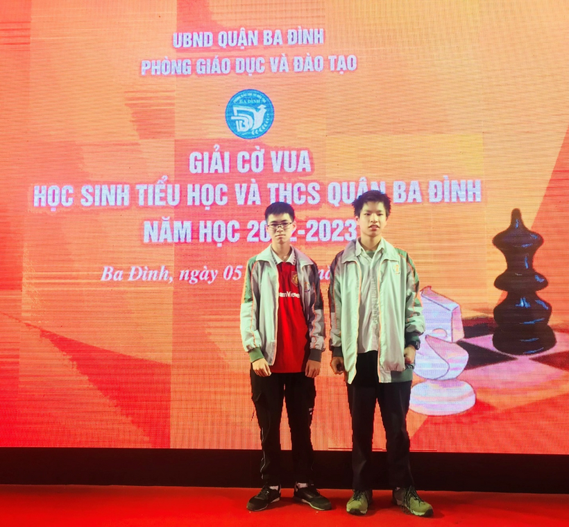 Lê Thanh Hoàng Tùng lớp 8A7 và Hà Duy Anh lớp 9A6 – giải Ba đồng đội U15