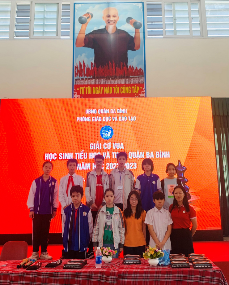 Cô trò trường THCS Thành Công tại giải Cờ vua cấp Quận