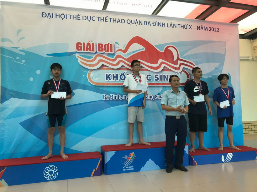 Theo Điều lệ số 56 ĐL-Trung tâm VHTT&TT về giải bơi Đại hội thể dục thể thao Quận Ba Đình và để hưởng ứng cuộc vận động “Toàn dân rèn luyện thân thể theo tấm gương Bác Hồ vĩ đại”, sáng ngày 5/8/2022 Trung tâm VHTT&TT Quận Ba Đình đã tổ chức thi đấu môn Bơi lội, tham gia dự thi có những đội tuyển đến từ các trường Tiểu học và THCS trong địa bàn Quận.