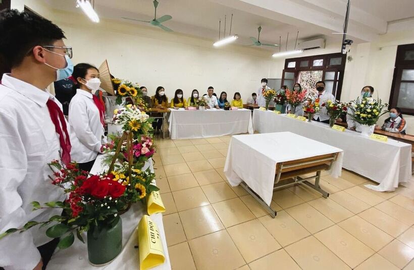 Từ sáng sớm, các con học sinh đã vô cùng hào hứng mang những bông hoa tươi thắm đến trường để chuẩn bị cho hội thi ngày hôm nay. Đây cũng là hoạt động đầu tiên từ khi các con được quay trở lại trường nên ai nấy đều rạng rỡ, vui vẻ. Hội thi đã được diễn ra trong sự hưởng ứng nồng nhiệt của 15 chi đội tham gia thi trực tiếp và 24 chi đội tham gia dưới hình thức online. Sau đây là hình ảnh vô cùng độc đáo, đặc sắc của các chi đội: