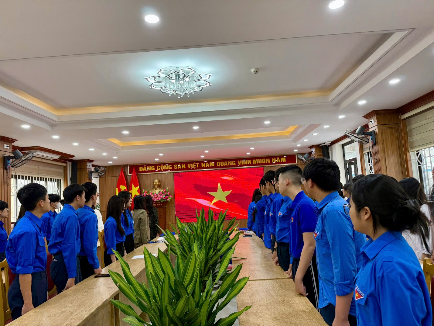 Thay mặt cho 44 thanh niên ưu tú, học sinh Phan Đỗ Ngọc Mai lớp 9A4 đã lên đọc Đơn xin gia nhập Đoàn. Ngọc Mai bày tỏ niềm vinh dự, tự hào được trở thành Đoàn viên Đoàn TNCS Hồ Chí Minh; nêu cao tinh thần phấn đấu vì mục tiêu lý tưởng của Đảng và Bác Hồ; nghiêm chỉnh thực hiện điều lệ Đoàn; tích cực rèn luyện để xứng đáng với danh hiệu Đoàn viên Đoàn TNCS Hồ Chí Minh.