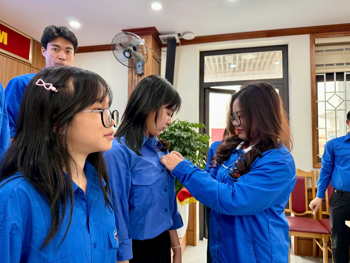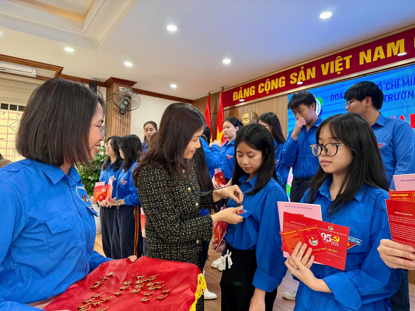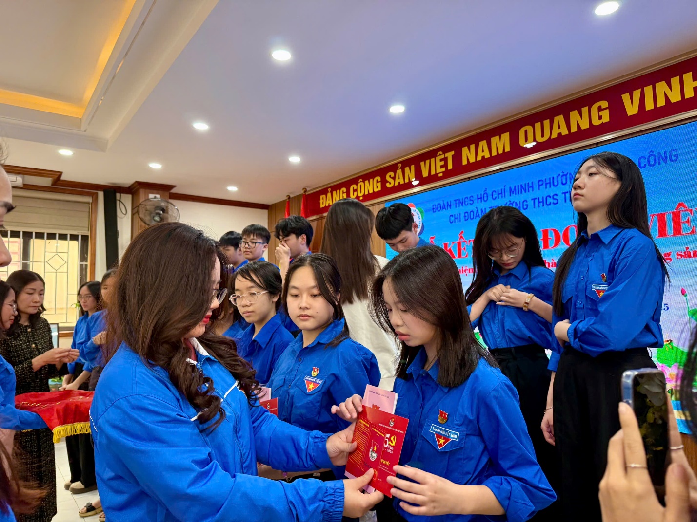 Cuối buổi lễ, cô giáo Trần Thị Quỳnh Hương – Phó bí thư Chi bộ, Phó hiệu trưởng nhà trường và đồng chí Nguyễn Phương Anh – Phó bí thư Đoàn phường Thành Công đã có những lời chia sẻ, động viên và thể hiện sự tin tưởng, tự hào về các em. Mong rằng các em sẽ tiếp tục phát huy truyền thống tốt đẹp của nhà trường và đem sức trẻ đi cống hiến ở muôn nơi.