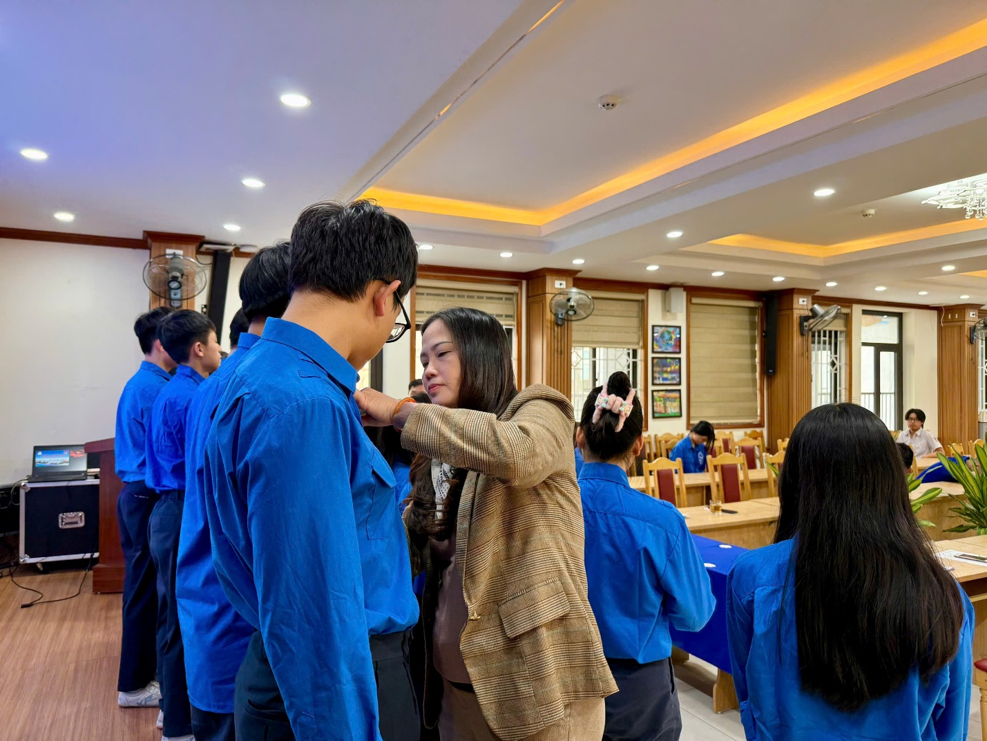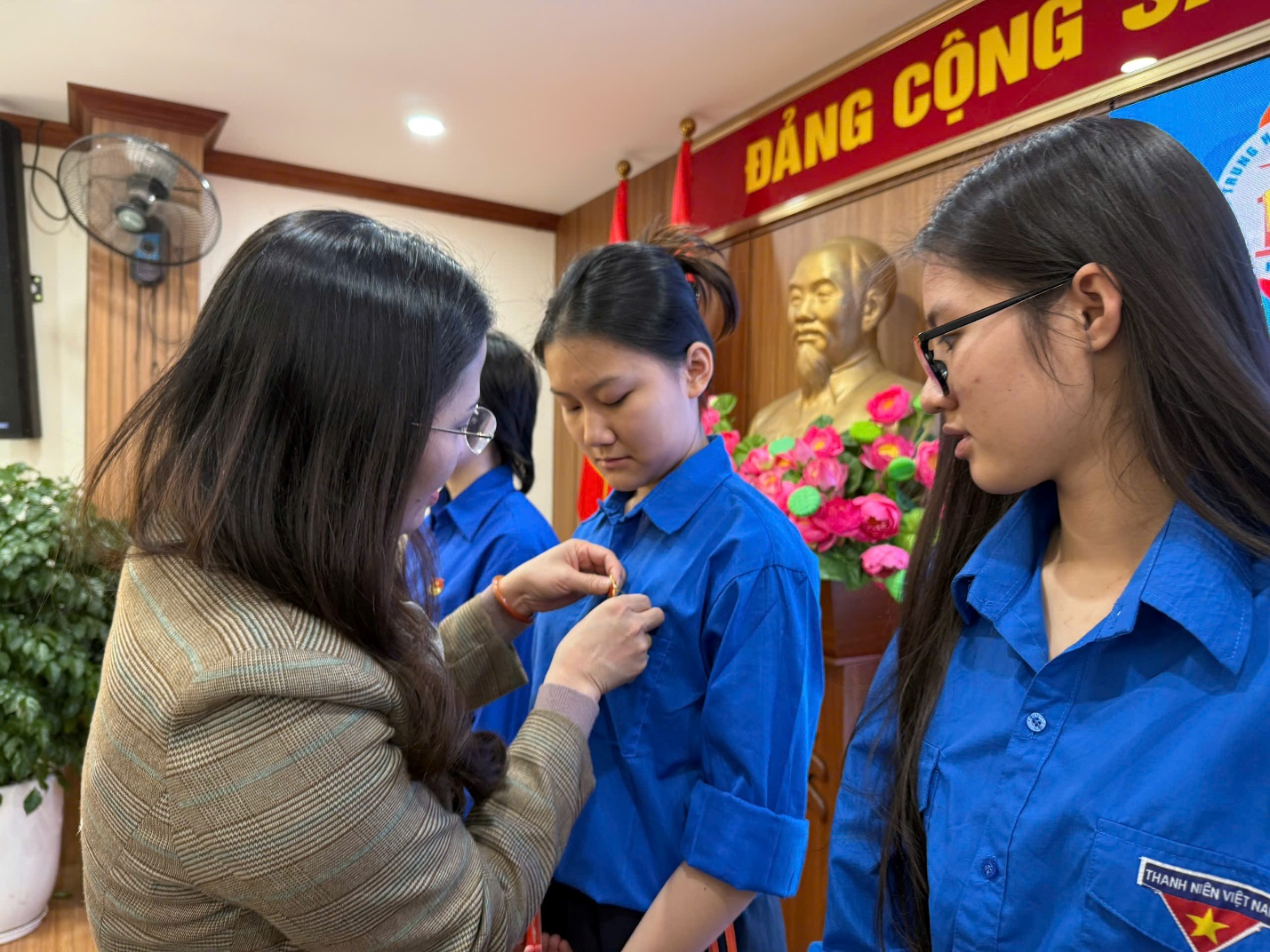 Sau lời hứa của đại diện các đoàn viên mới, đồng chí Phạm Thanh Tùng - Bí thư đoàn trường đọc Quyết định chuẩn y kết nạp 44 đội viên ưu tú vào Đoàn TNCS Hồ Chí Minh. Trong giây phút thiêng liêng của buổi lễ, các thầy cô giáo trong Ban chấp hành Chi đoàn nhà trường đã trang trọng trao huy hiệu và sổ đoàn cho các đoàn viên mới.