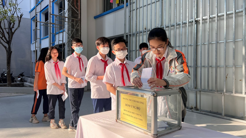 Học sinh các khối quyên góp ủng hộ nhân dân miền Trung