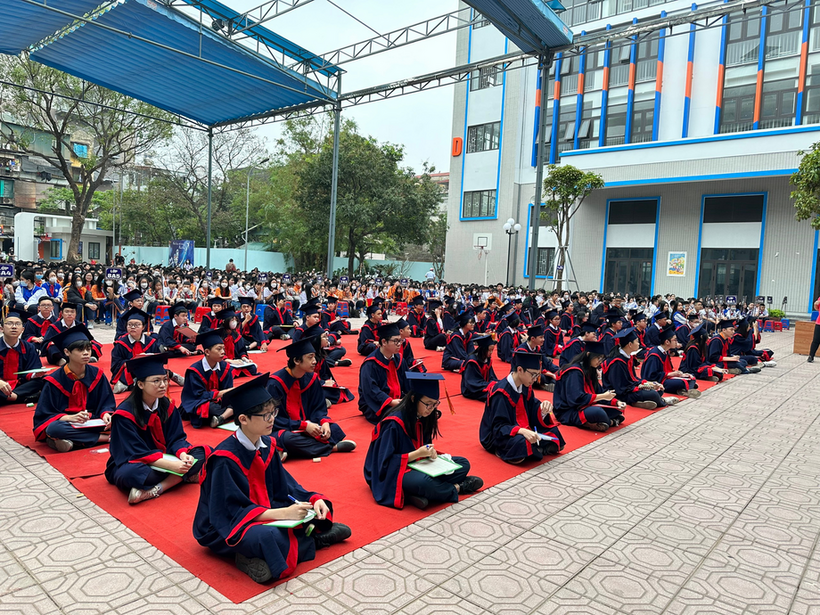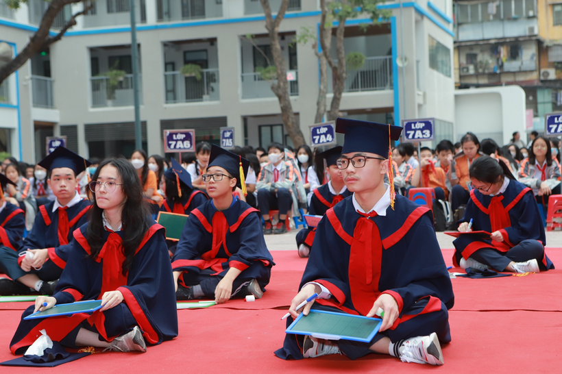 Cô trò chụp ảnh lưu niệm chúc mừng người chiến thắng