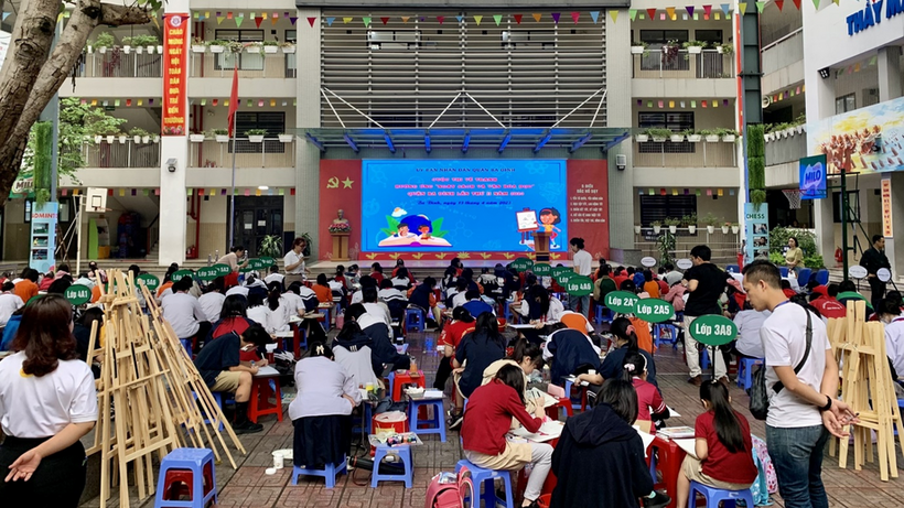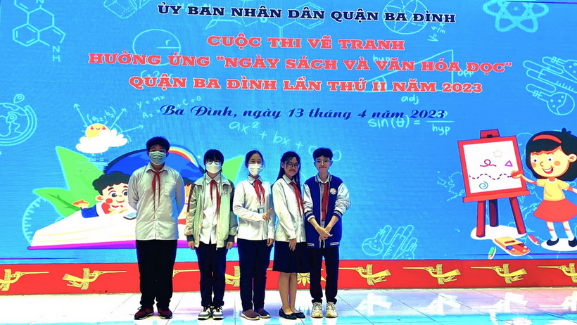 Tại trường Tiểu học Thành Công B , em cùng một bạn ở lớp với ba chị học sinh tài năng của trường mình tham gia cuộc thi vẽ tranh thiếu nhi với chủ đề mang tên "Sách và cuộc sống ". Đây là một trong những hoạt động tiêu biểu hưởng ứng ngày "Sách và văn hóa đọc Việt Nam" lần thứ II năm 2023 do Ủy ban nhân dân quận Ba Đình tổ chức . Em thấy rằng cuộc thi ấy rất có ý nghĩa trong việc khuyến khích các bạn học sinh phát triển năng khiếu vẽ tranh, tư duy sáng tạo và đặc biệt là tình yêu đối với những trang sách .