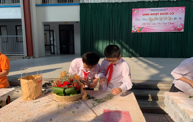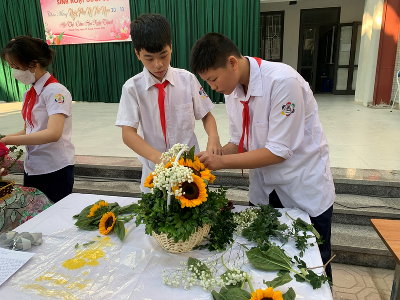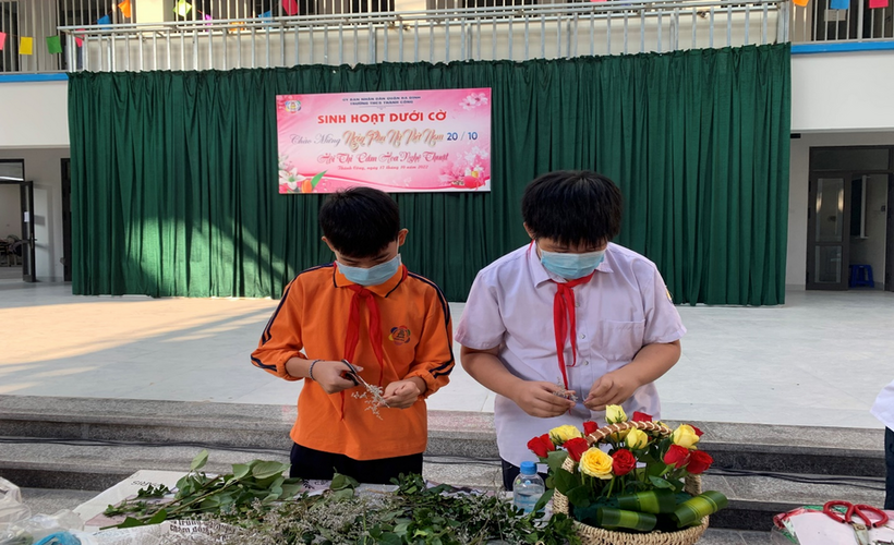 Với chủ đề sinh hoạt dưới cờ, các chi đội đều tham gia tích cực “Hội thi cắm hoa mừng ngày 20.10” với rất nhiều sản phẩm sáng tạo, chất chứa bao tình cảm thắm thiết kính tặng bà, tặng mẹ, tặng cô và các bạn gái. Đặc biệt đông đảo các học sinh nam dự thi phần cắm hoa, với những bông hoa tươi thắm, lời thuyết trình sâu sắc các em đã đem đến Hội thi những món quà tinh thần thật đẹp, thật ý nghĩa. Trên trang web của nhà trường cũng chọn đăng các bài thơ, các trang văn đầy cảm xúc của các con gửi tặng những người phụ nữ mình yêu thương.