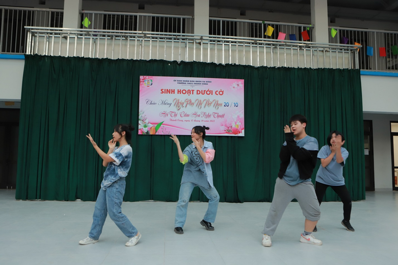 Học sinh biểu diễn văn nghệ chào mừng ngày hội 20/10