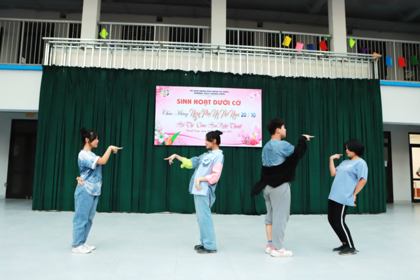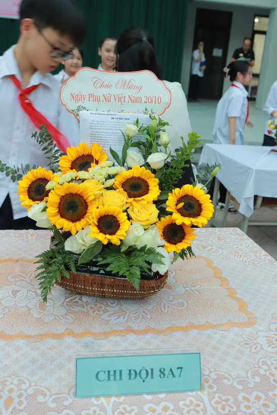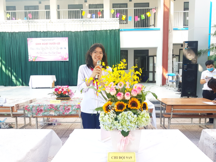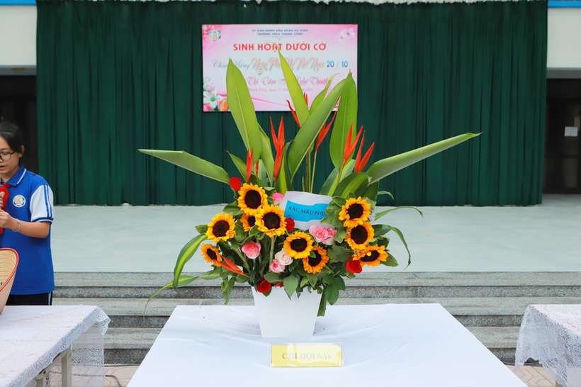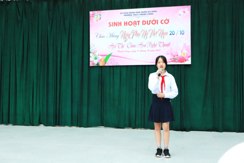 Một điều thật hấp dẫn đối với khán giả là trong khi các đội thi cắm hoa miệt mài thể hiện tác phẩm của mình thì chúng tớ được theo dõi một phần văn nghệ đặc sắc đến từ các chi đội, phần giao lưu với khán giả của hai MC rất khéo léo, tinh tế và dẫn dắt rất duyên nữa. Chúng tớ được biết thêm về lịch sử ngày 20/10 cũng như các hoạt động nhằm tôn vinh người phụ nữ Việt Nam. Và bạn có thể tưởng tượng được không khi mà trước toàn trường, bạn nhận được lời nhắn yêu thương từ một nam nhân (giấu tên) ở lớp khác. Lúc ấy, tim mình như vỡ oà còn sân trường Thành Công như bùng nổ cảm xúc vậy.