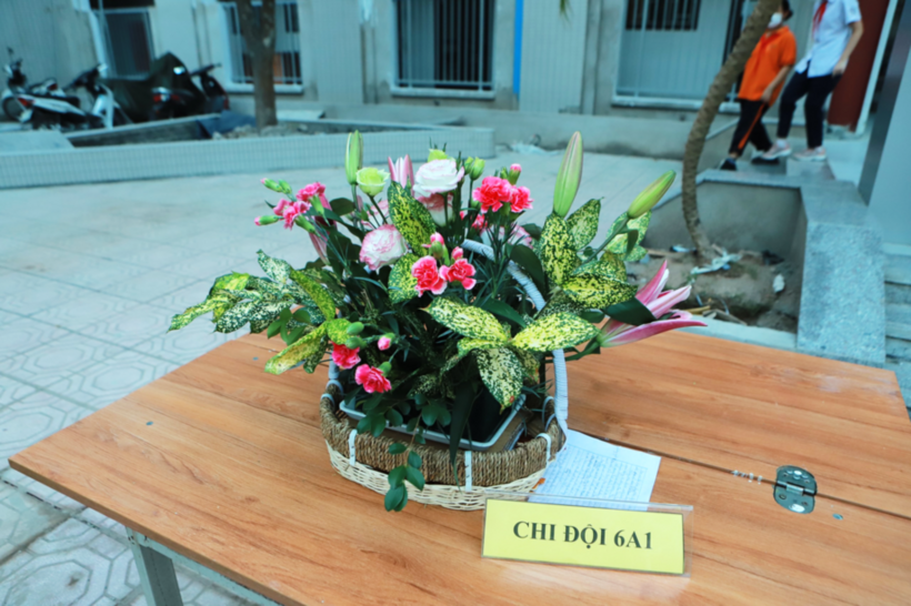 Bạn nào cũng mong muốn tác phẩm của lớp mình là đẹp nhất và ý nghĩa nhất nên ai cũng chăm chút, cẩn thận, tỉ mỉ từ việc chọn nguyên liệu, chọn cách cắm, tên tác phẩm và nội dung sẽ thuyết trình.