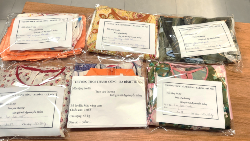 Với tinh thần đó, nhân dịp Tuần lễ áo dài (1/3/2023 – 8/3/2023), Công đoàn trường THCS Thành Công đã tổ chức chương trình “Tặng áo dài – Trao yêu thương – Giữ gìn nét đẹp truyền thống”. Những bộ áo dài ủng hộ đã được giặt là sạch sẽ, gấp gọn gàng, đóng gói cẩn thận và ghi rõ kích cỡ để thuận tiện cho quá trình tổng hợp, phân loại.