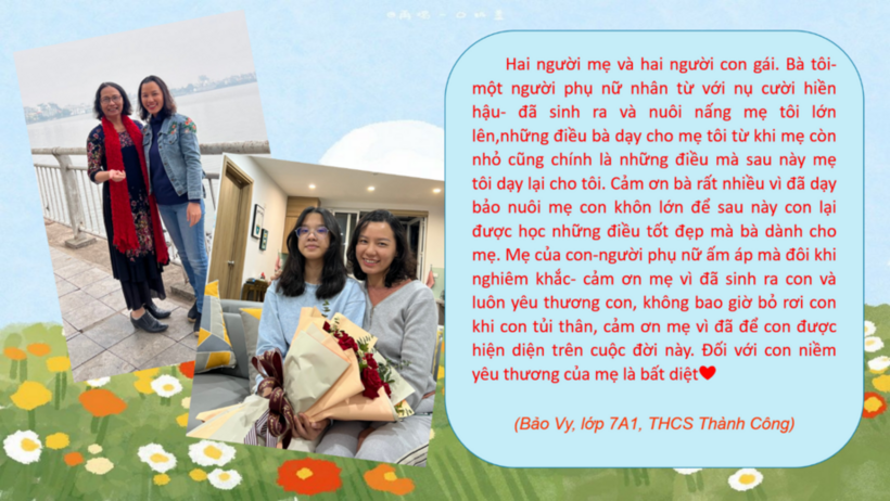 Mùng 8 tháng 3 năm nay, chúng tôi khoe tấm hình những đoá hoa trong các thế hệ gia đình, với tình yêu ngọt ngào, lòng biết ơn sâu đậm dành đến những người vun vén, thắp sáng tổ ấm và niềm hi vọng, tin yêu mình sẽ toả rạng như bà, như mẹ, như chị- những đoá hoa trong lòng chúng tôi, những người đã cho cuộc đời chúng ta nở hoa.