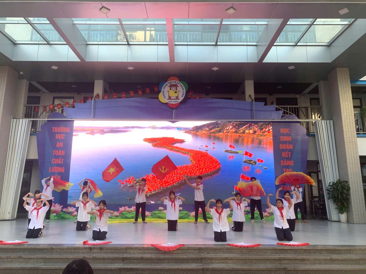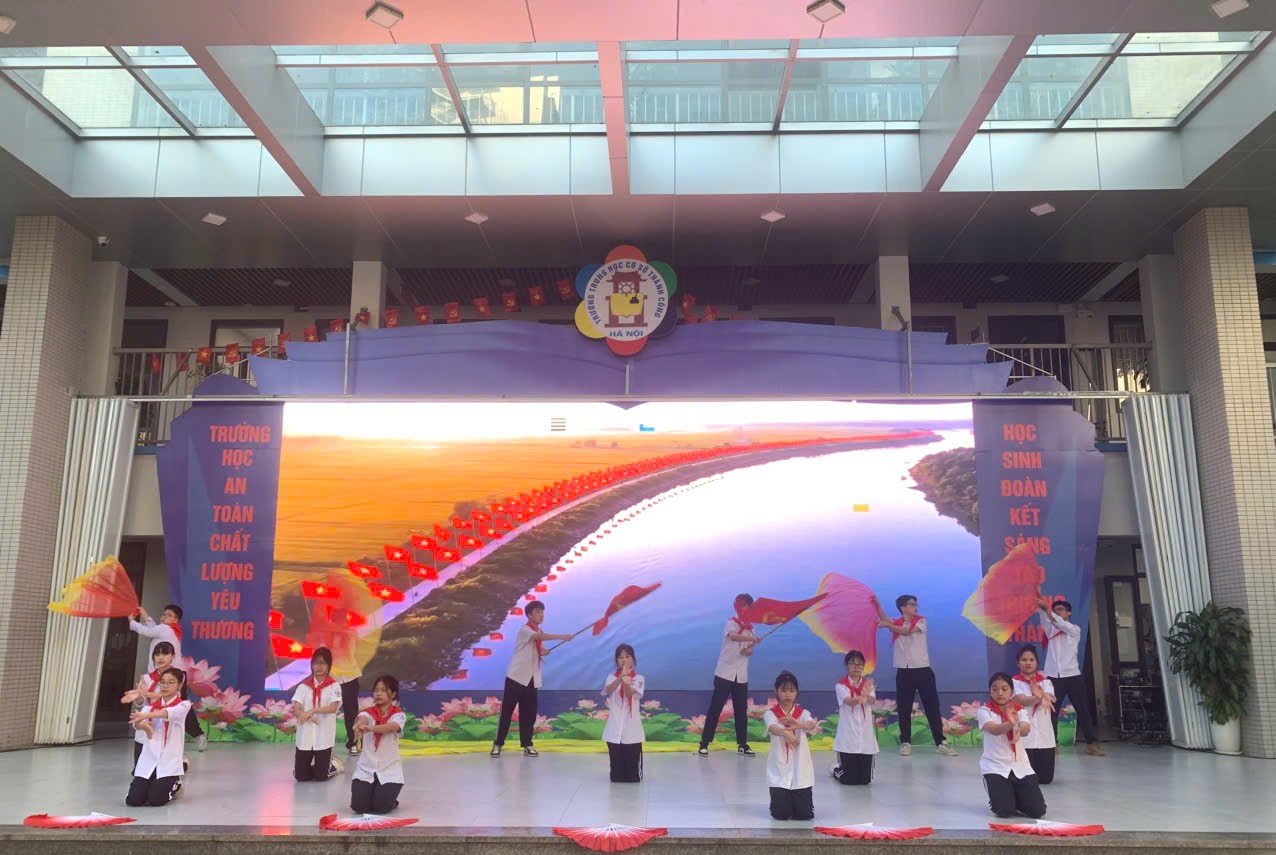 Không chỉ tham gia hoạt động vẽ tranh chào mừng, các cô cậu học trò 8A10 còn mạnh dạn dự thi sơ khảo văn nghệ chào mừng kỉ niệm 43 năm ngày Nhà giáo Việt Nam. Tiết mục hát múa liên khúc “Thịnh vượng Việt Nam sáng ngời” và "Nhà tôi có treo một lá cờ" được chuẩn bị chu đáo từ phần nhạc cho đến hình ảnh. Những động tác nhảy múa đồng điệu đâu chỉ thể hiện sự nỗ lực cố gắng của nhóm nghệ sĩ nhí mà còn là sự đoàn kết và niềm say sưa của tập thể lớp. Các bạn đã cùng nhau tập luyện miệt mài, cùng nhau cất lên lời ca rộn ràng, biến tiết mục của mình thành món quà tinh thần ý nghĩa và tuyệt vời nhất gửi đến Thầy Cô.