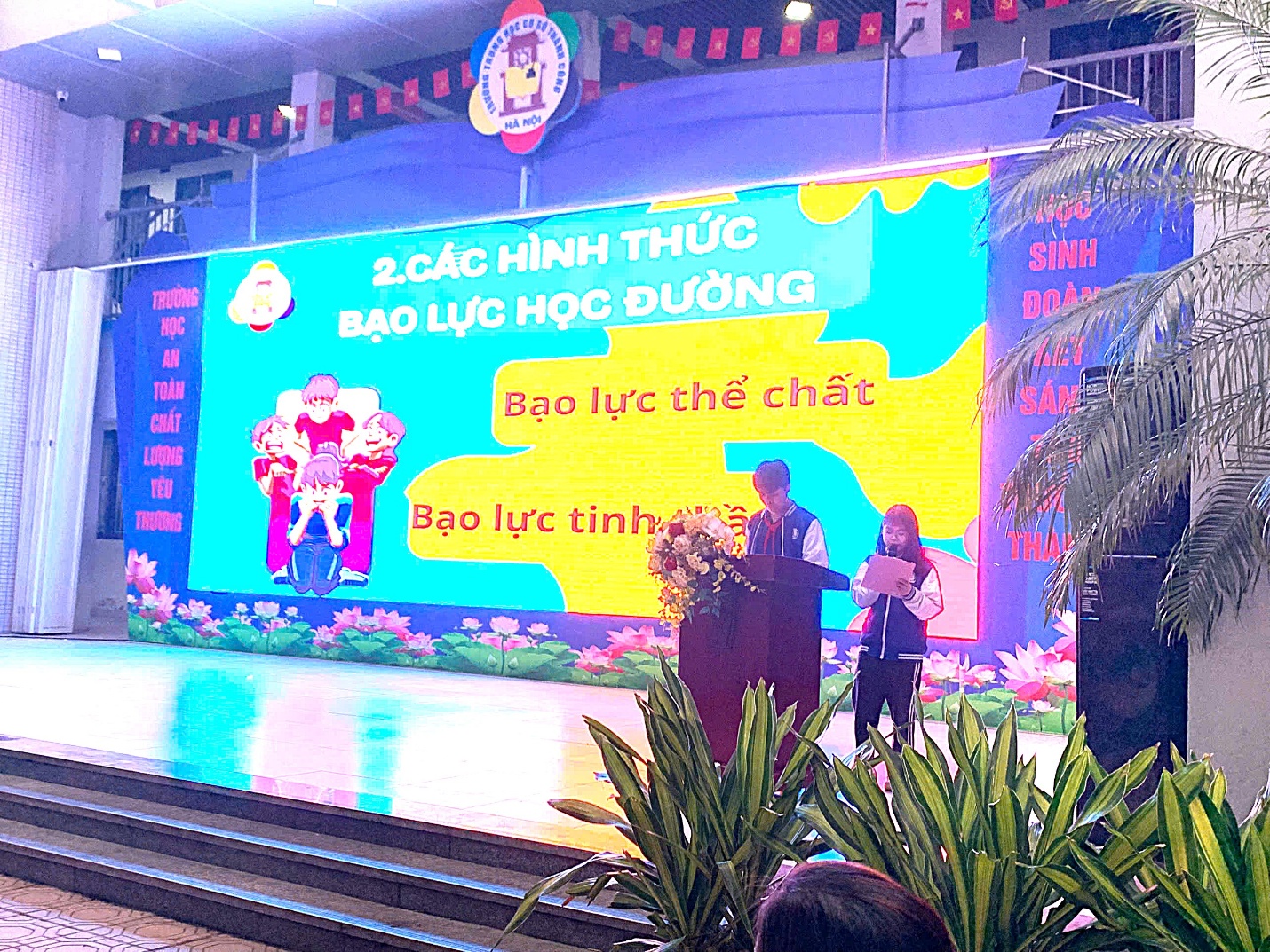 Để có được 35 phút chương trình lôi cuốn, các bạn học sinh 8A6 và 8A10 đã dành rất nhiều tâm huyết. Ngay từ khâu lên kịch bản, các "biên tập viên nhí" đã khéo léo lồng ghép những tình huống thực tế mà chúng ta thường gặp: từ việc trêu chọc bằng biệt danh, tẩy chay trong nhóm bạn, cho đến những hiểu lầm trên mạng xã hội.