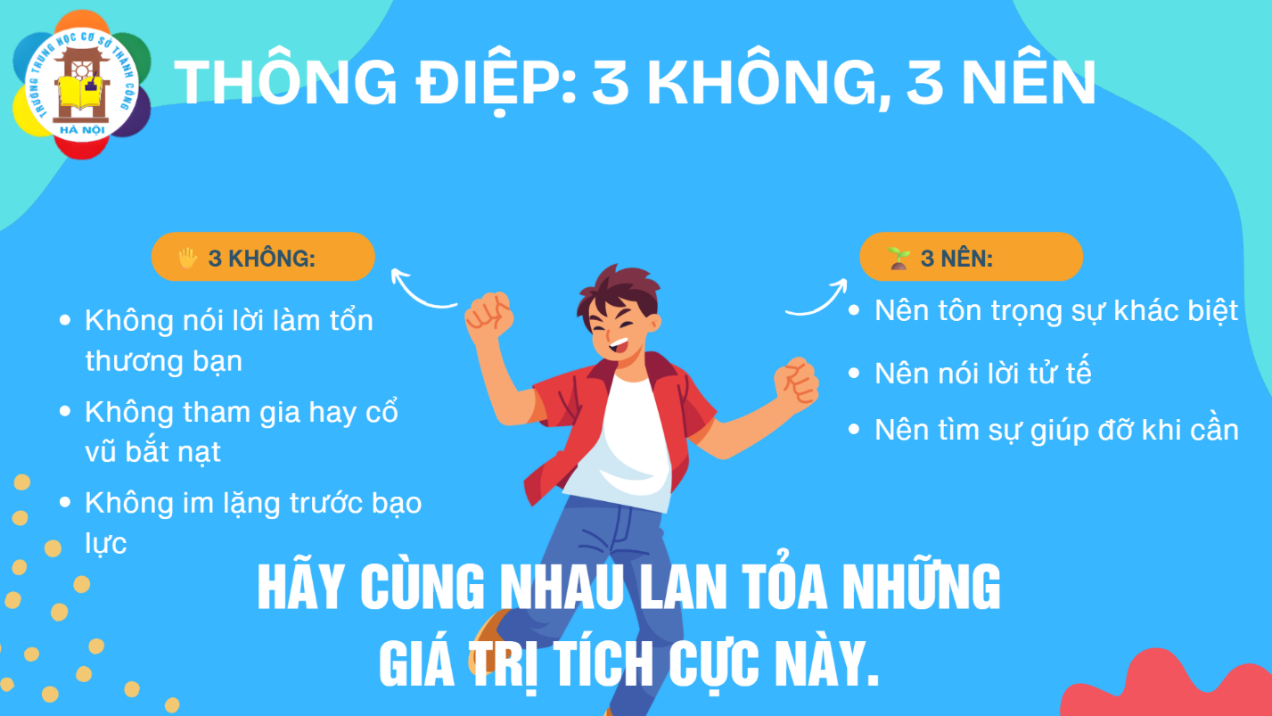 Hãy cùng nhau xây dựng một môi trường học đường nơi chỉ có nụ cười, sự thấu hiểu và những vòng tay siết chặt. Vì một mái trường hạnh phúc, hãy xây dựng tình bạn đẹp, nói không với bạo lực học đường!