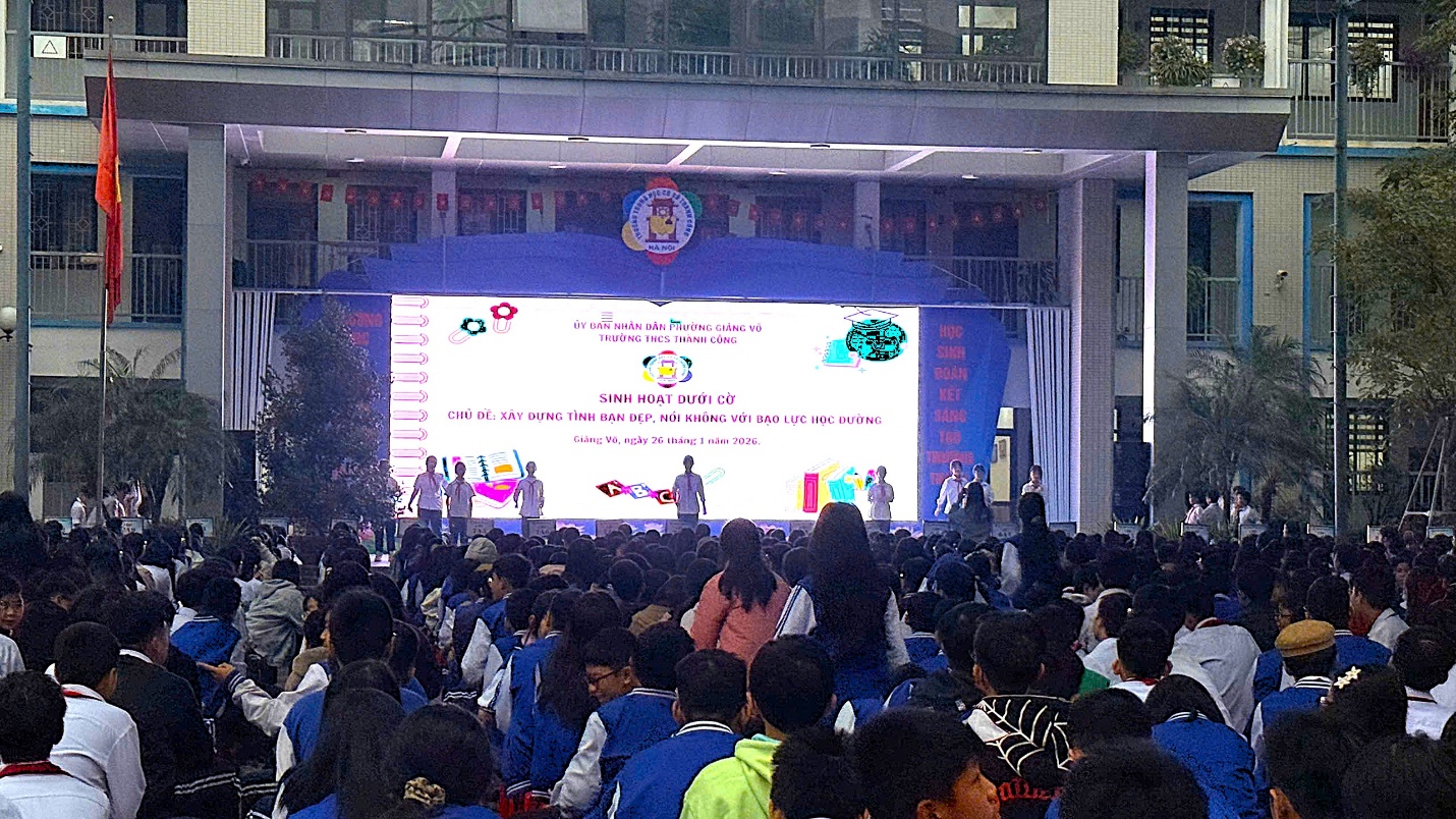 Sáng nay thứ hai 26/1/2026, không khí vẫn còn se lạnh nhưng sân trường đã rộn ràng hơn thường lệ bởi buổi sinh hoạt dưới cờ đầy ý nghĩa. Với chủ đề “Xây dựng tình bạn đẹp – Nói không với bạo lực học đường”, hai tập thể lớp 8A6 và 8A10 đã mang đến những thông điệp nhân văn, lan tỏa năng lượng tích cực đến toàn thể thầy cô và các bạn học sinh.