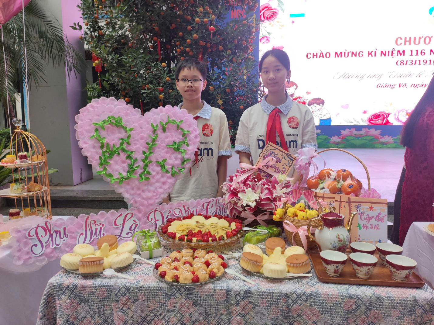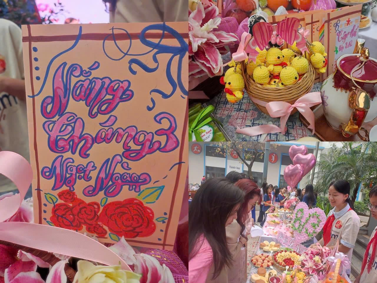 Theo phần chia sẻ của Thảo và Thịnh, bàn tiệc được trang trí với mong muốn tạo nên một không gian ấm áp, nhẹ nhàng và tràn đầy yêu thương, giống như tình cảm chân thành mà các bạn học sinh dành cho những người phụ nữ xung quanh mình.