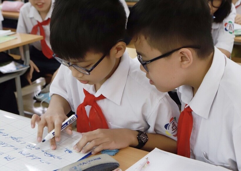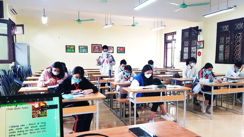 Một giờ học kết hợp trực tiếp và trực tuyến của học sinh trường THCS Thành Công chúng em.