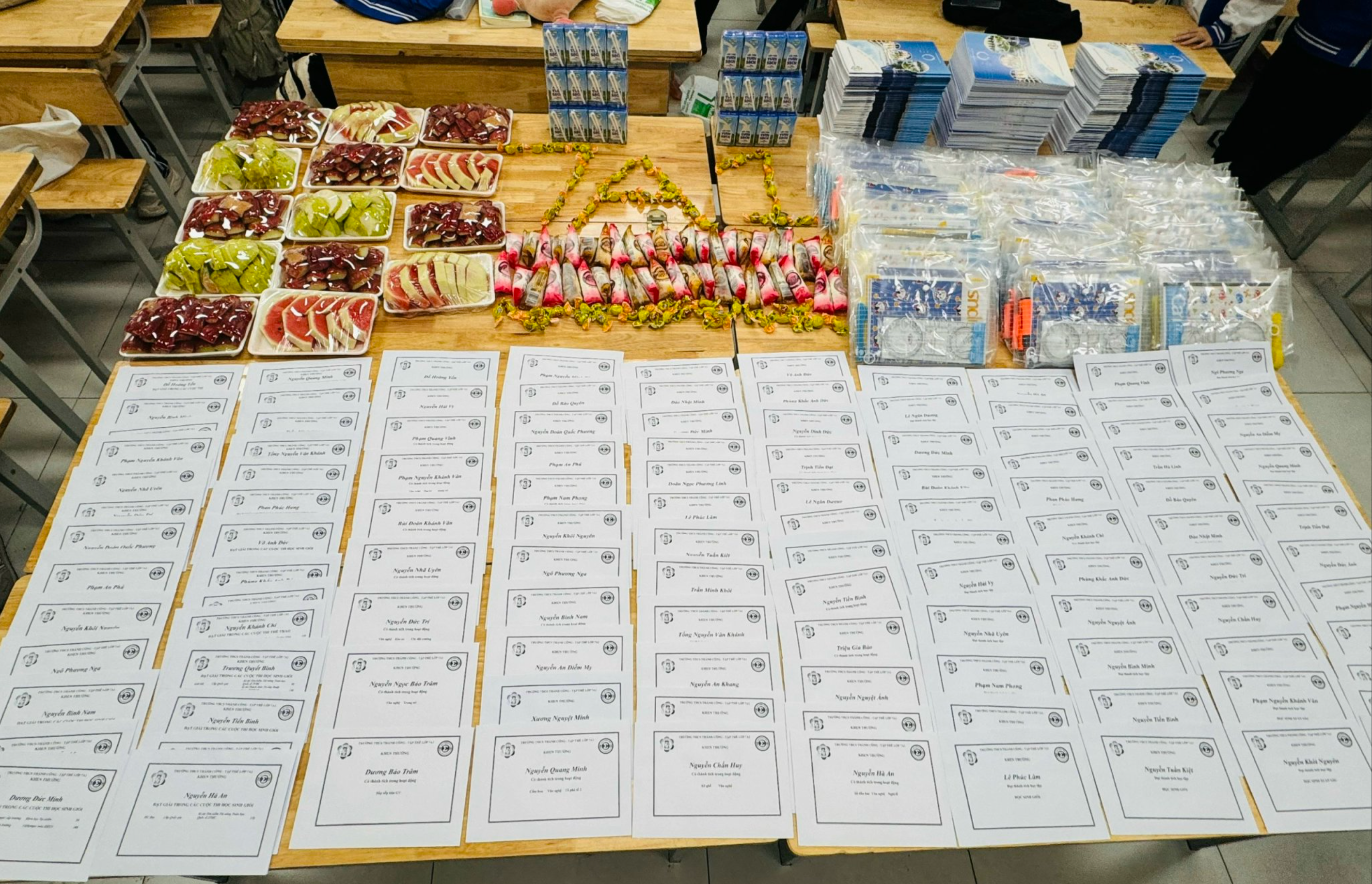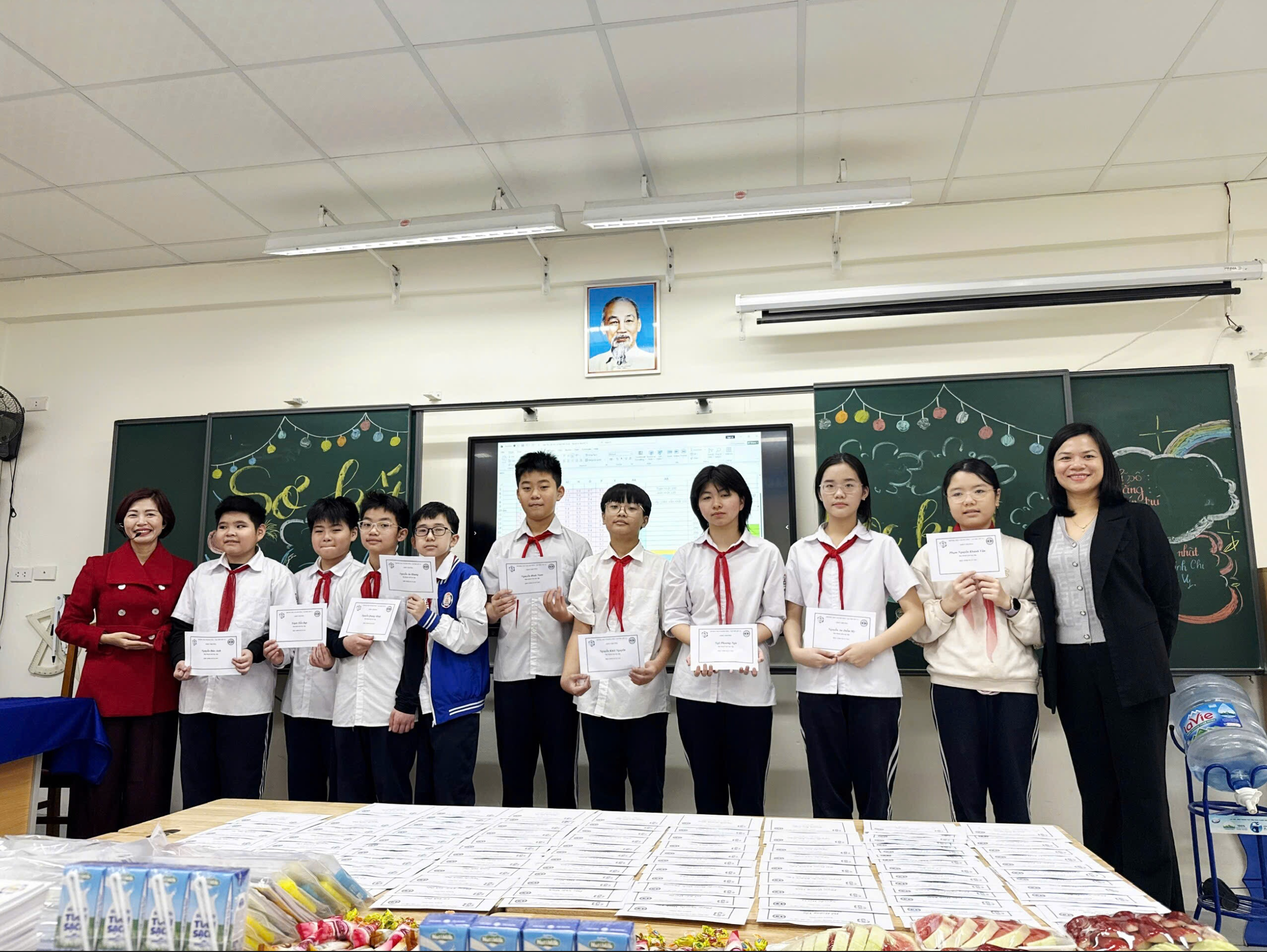 Sau phần tổng kết và trao thưởng, tập thể lớp 7A1 đã cùng nhau tham gia buổi liên hoan trong không khí thân mật, vui tươi. Những câu chuyện rôm rả, những nụ cười rạng rỡ đã làm cho lớp học ngập tràn tiếng cười và niềm vui, tạo nên nhiều khoảnh khắc đáng nhớ. Khép lại buổi sơ kết, các bạn học sinh cùng nhau chụp ảnh lưu niệm để ghi dấu những hình ảnh đẹp, đánh dấu một học kỳ đã qua với thật nhiều kỷ niệm. Buổi sơ kết học kỳ I không chỉ là dịp nhìn lại những thành quả đã đạt được mà còn góp phần thắt chặt tinh thần đoàn kết, tiếp thêm động lực để tập thể lớp 7A1 cùng nhau nỗ lực và tiến xa hơn trong chặng đường phía trước.