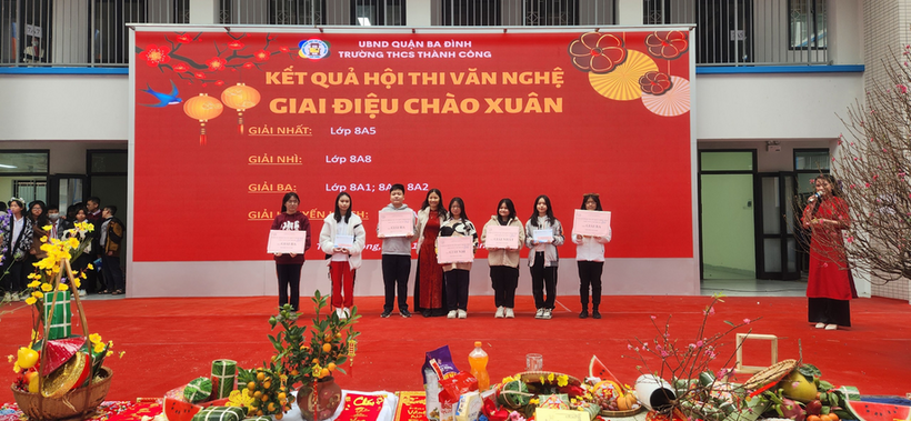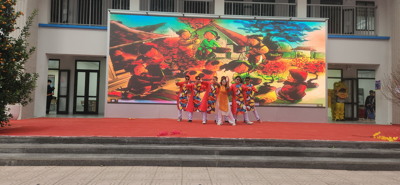 Chương trình ngày hôm nay có rất nhiều tiết mục vui tươi và đặc sắc. Lớp 8A5 chúng em rất vinh dự khi được tham gia “Hội thi văn nghệ” chào mừng năm mới. Chúng em đã rất cố gắng tập luyện để đem lại một tiết mục thật đầu tư và sáng tạo cho khán giả. Đồng thời, phần trang phục và đạo cụ của tiết mục cũng được cô Minh Phương - GVCN lớp 8A5 chuẩn bị vô cùng chu đáo. Công sức của cô trò lớp 8A5 đã được đền đáp khi tiết mục “Liên khúc chào xuân” thành công vượt qua vòng loại và tiến vào Gala.