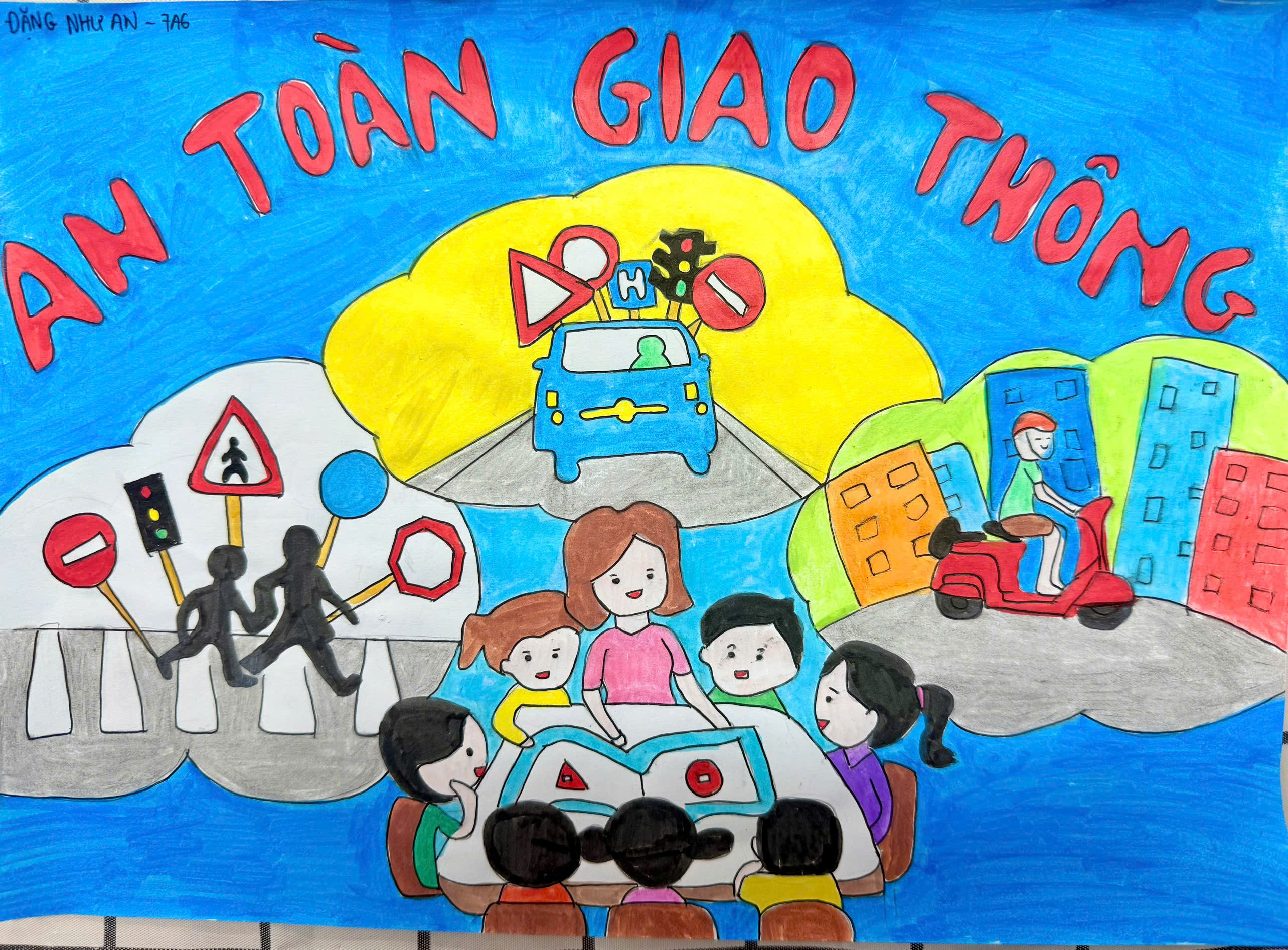 Tranh vẽ tuyên truyền an toàn giao thông của học sinh lớp