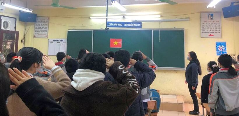 Giờ chào cờ đầu tiên của lớp 7A7 trong cơn đại dịch Covid-19 hiện nay